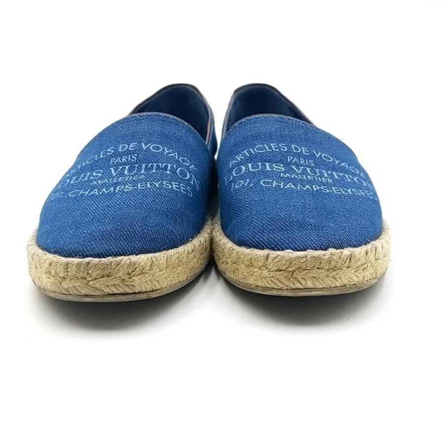 ・送料無料 ルイヴィトン LOUIS VUITTON エスパドリーユ スリッポン 靴 シューズ サンライトライン ローファー フラットシューズ ジュート デニム インディゴ CL0114 伊製 イタリア製 35 1/2 22.5cm相当 青 ブルー系 レディース