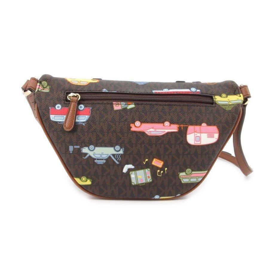 ・送料無料 超美品 マイケルコース MICHAEL KORS ボディバッグ スリングバッグ ショルダーバッグ クロスボディ 鞄 斜め掛け 車 シグネチャー プリント PVC レザー 35S1G3DC01 茶 ブラウン系 レディース