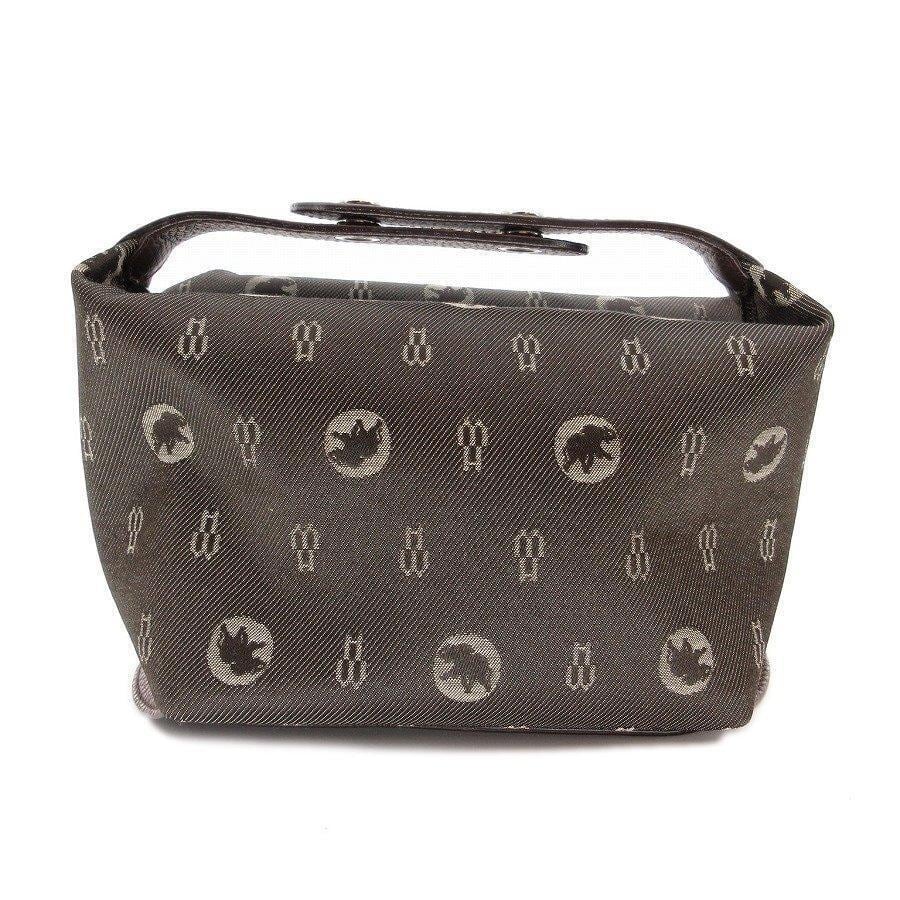 ・送料無料 超美品 ハンティングワールド HUNTING WORLD ハンドバッグ ポーチ 鞄 手提げ キャンバス 10・1・4・03 8566705 総柄 伊製 イタリア製 茶 ブラウン系 レディース