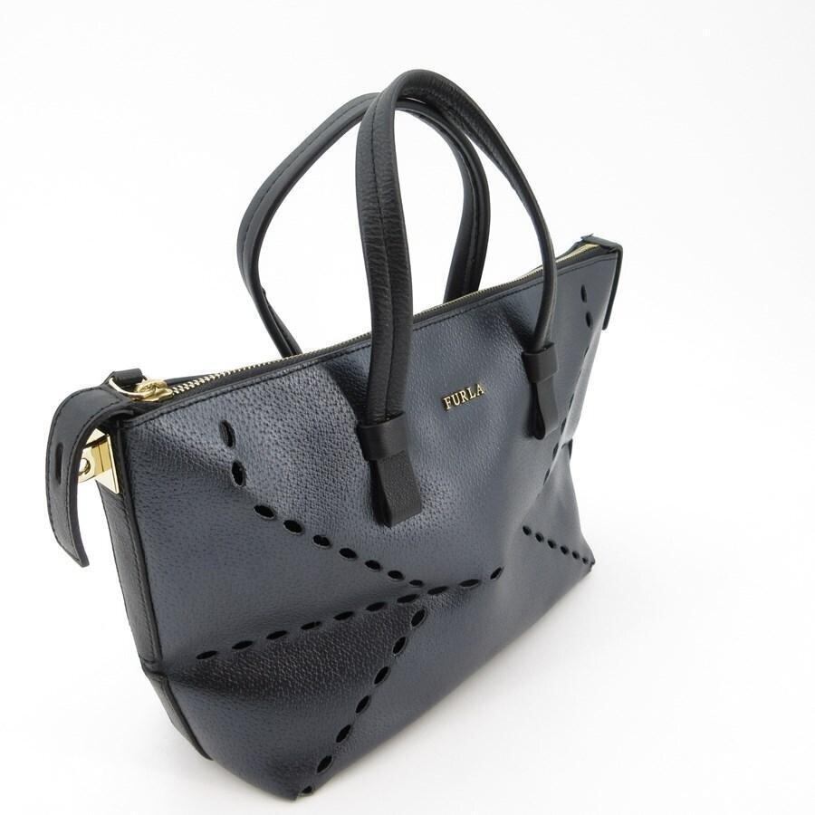 ・送料無料 超美品 フルラ FURLA ショルダーバッグ ハンドバッグ 鞄 手提げ 斜め掛け レザー 本革 パンチング パズルデザイン 2WAY 黒 ブラック系 レディース