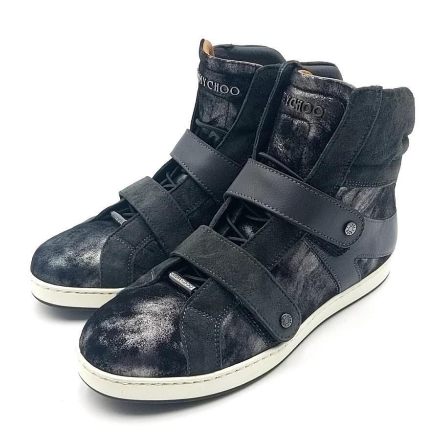 ・送料無料 超美品 ジミーチュウ JIMMY CHOO スニーカー 靴 シューズ ハイカット BELLS ベルクロ レザー 本革 伊製 イタリア製 36 1/2 23.5cm相当 チャコール系 レディース