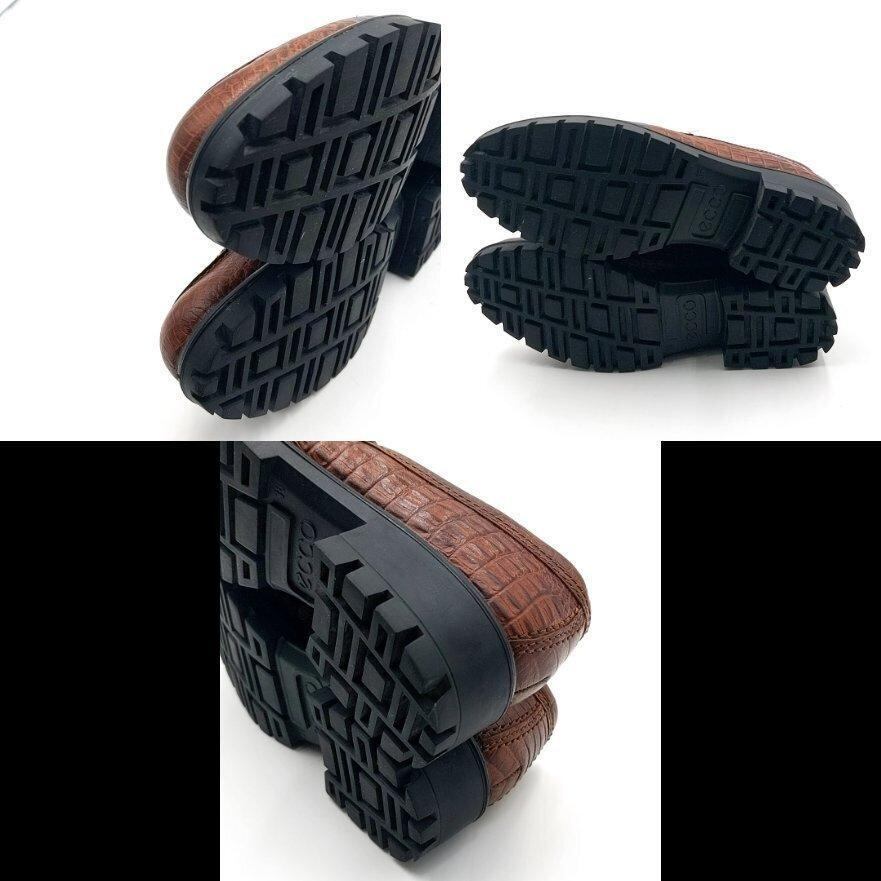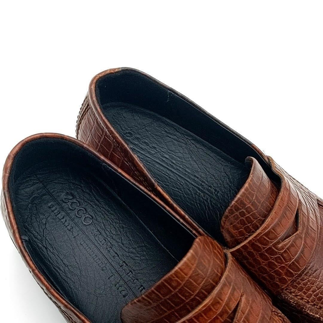 ・送料無料 美品 エコー ecco ローファー コインローファー ペニーローファー 靴 シューズ 49001311053 23308E1367P クロコ型押し レザー 本革 36 23cm相当 茶 ブラウン系 レディース