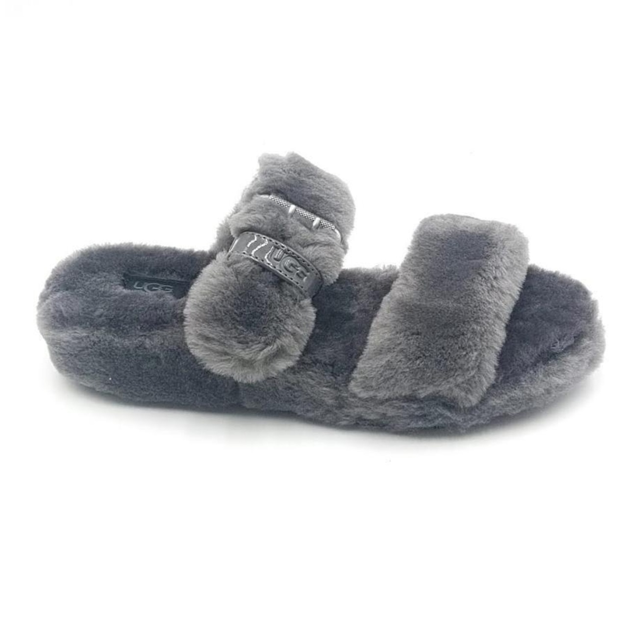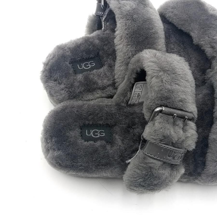・送料無料 超美品 アグ UGG サンダル 靴 シューズ ファー N/S 1104662 F27119B FUZZ YEAH ファズ イヤー シープスキン バックレス 25cm 灰 グレー系 レディース