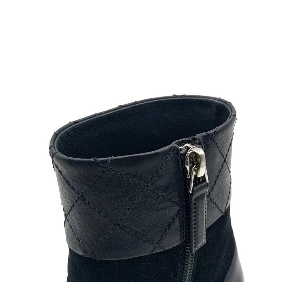 ・送料無料 シャネル CHANEL ショートブーツ 靴 シューズ レザー スエード チャンキーヒール キルティング ココマーク KG31010 Y15798 94305 伊製 イタリア製 36C 23cm相当 黒 ブラック系 レディース