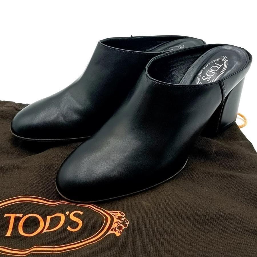 ・送料無料 トッズ TOD'S ミュール サボ パンプス 靴 シューズ レザー 本革 伊製 イタリア製 36 23cm相当 黒 ブラック系 レディース