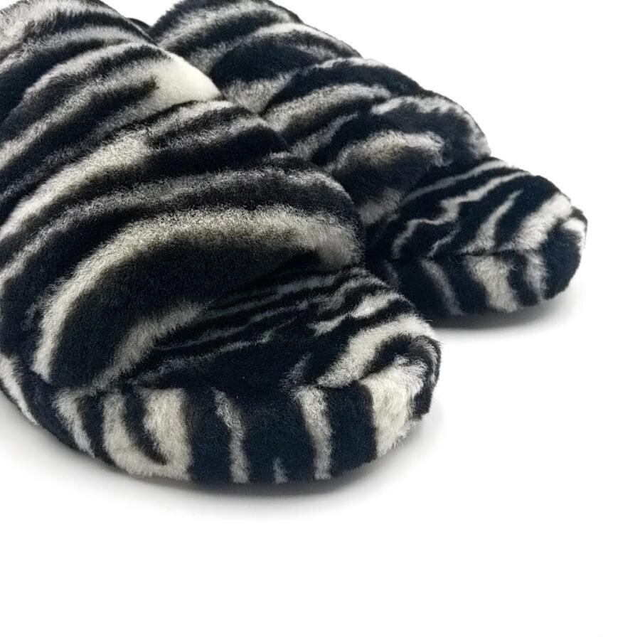 ・送料無料 美品 アグ UGG ファーサンダル 靴 シューズ 1116156K フラッフ イヤー スライド ゼブラ Fluff Yeah Slide Zebra 24.5cm 黒 ブラック系 レディース