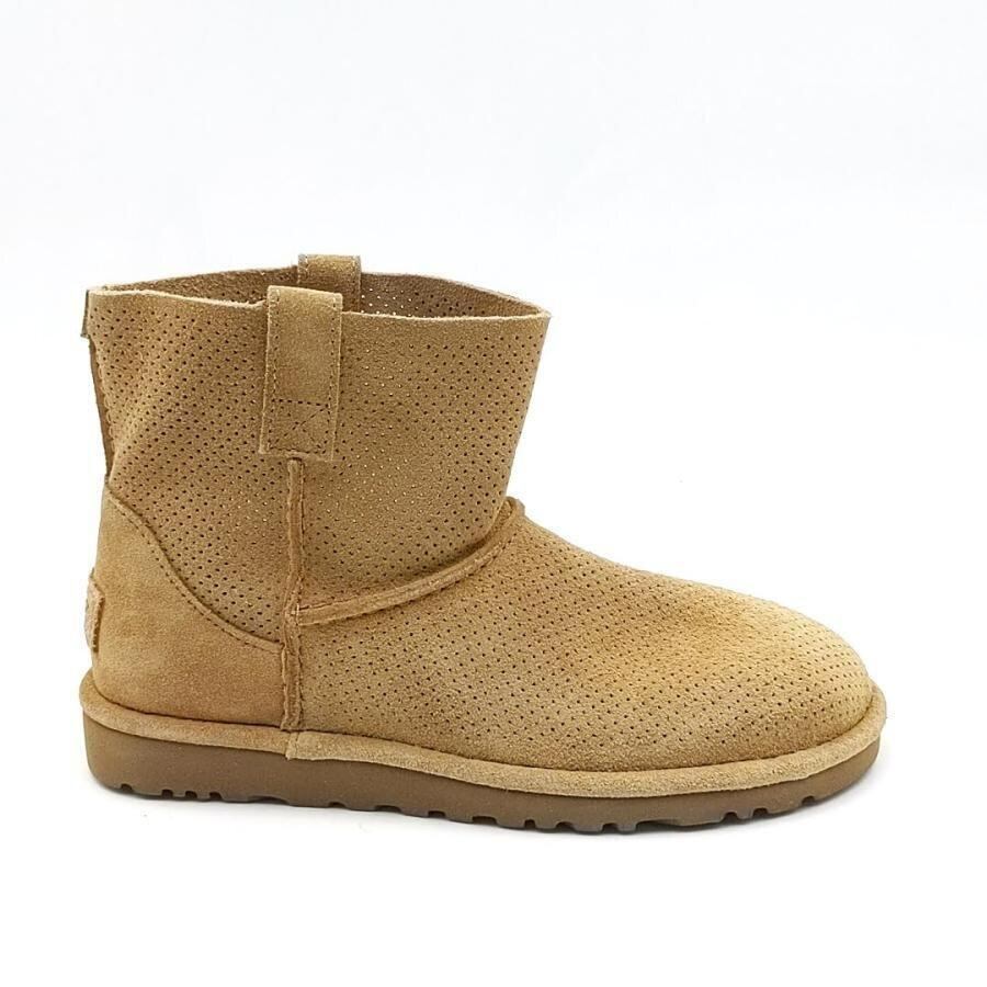 ・送料無料 アグ UGG ショートブーツ 靴 シューズ 1016852 クラシック アンラインド ミニ パーフ Classic Unlined Mini Perf 1BHT79VZZ50TC3P スエード レザー 24 ベージュ系 レディース