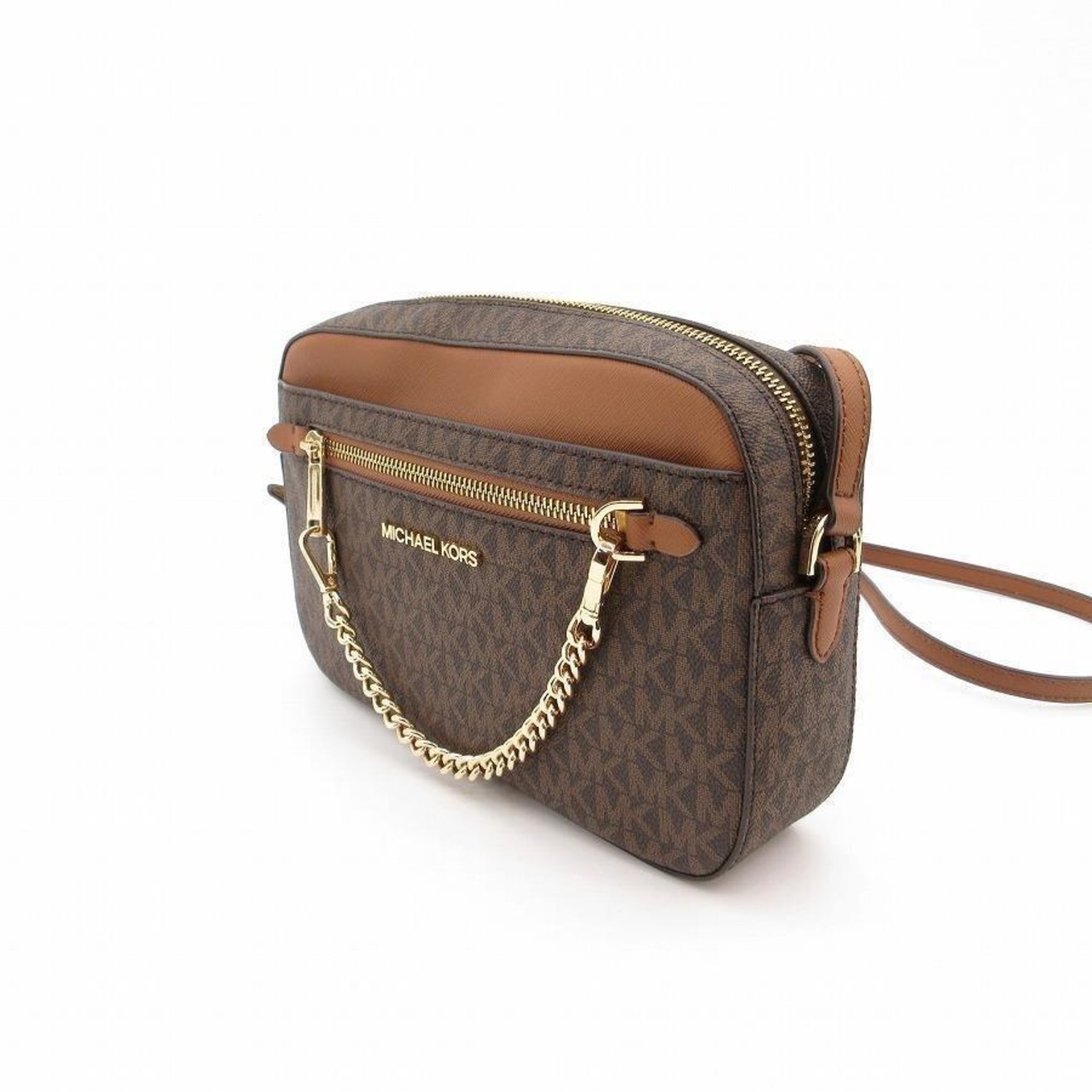 ・送料無料 超美品 マイケルコース MICHAEL KORS ショルダーバッグ ポシェット 鞄 斜め掛け 35S1GTTC9B ラージ EW ジップ チェーン クロスボディー PVC レザー 茶 ブラウン系 レディース
