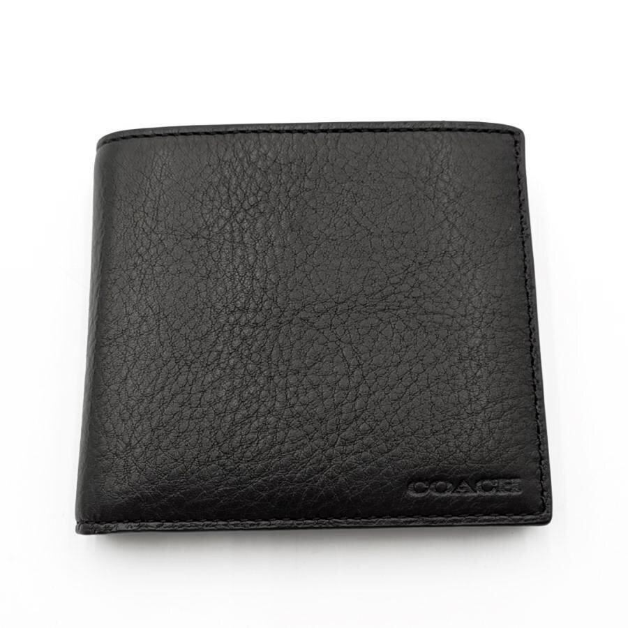 ・送料無料 美品 コーチ COACH 財布 二つ折り ウォレット レザー 本革 黒 ブラック系 メンズ