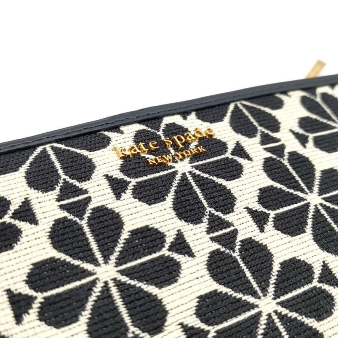 ・送料無料 超美品 ケイトスペード ニューヨーク kate spade NEW YORK 長財布 財布 二つ折り フラワージャガード ジップ スリム ウォレット 黒 ブラック系 レディース