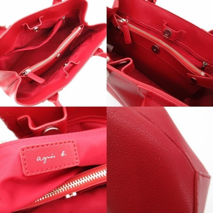 ・送料無料 美品 アニエスベー agnes b. ハンドバッグ トートバッグ 鞄 手提げ レザー 本革 A4可能 赤 レッド系 レディース