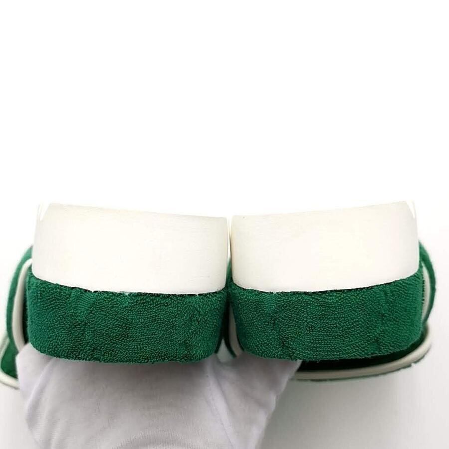 ・送料無料 美品 グッチ GUCCI アディダス adidas コラボ サンダル プラットフォーム スライドサンダル パイル地 702412 UU010 3171 GG柄 伊製 イタリア製 7 27cm相当 緑 グリーン系 メンズ