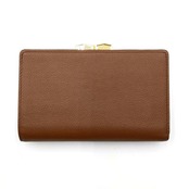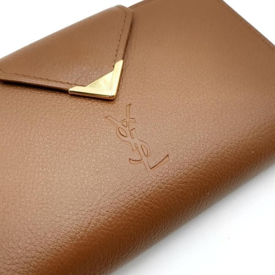 ・送料無料 超美品 イヴサンローラン YVES SAINT LAURENT 財布 二つ折り ミディアムウォレット がま口 レザー 本革 茶 ブラウン系 レディース