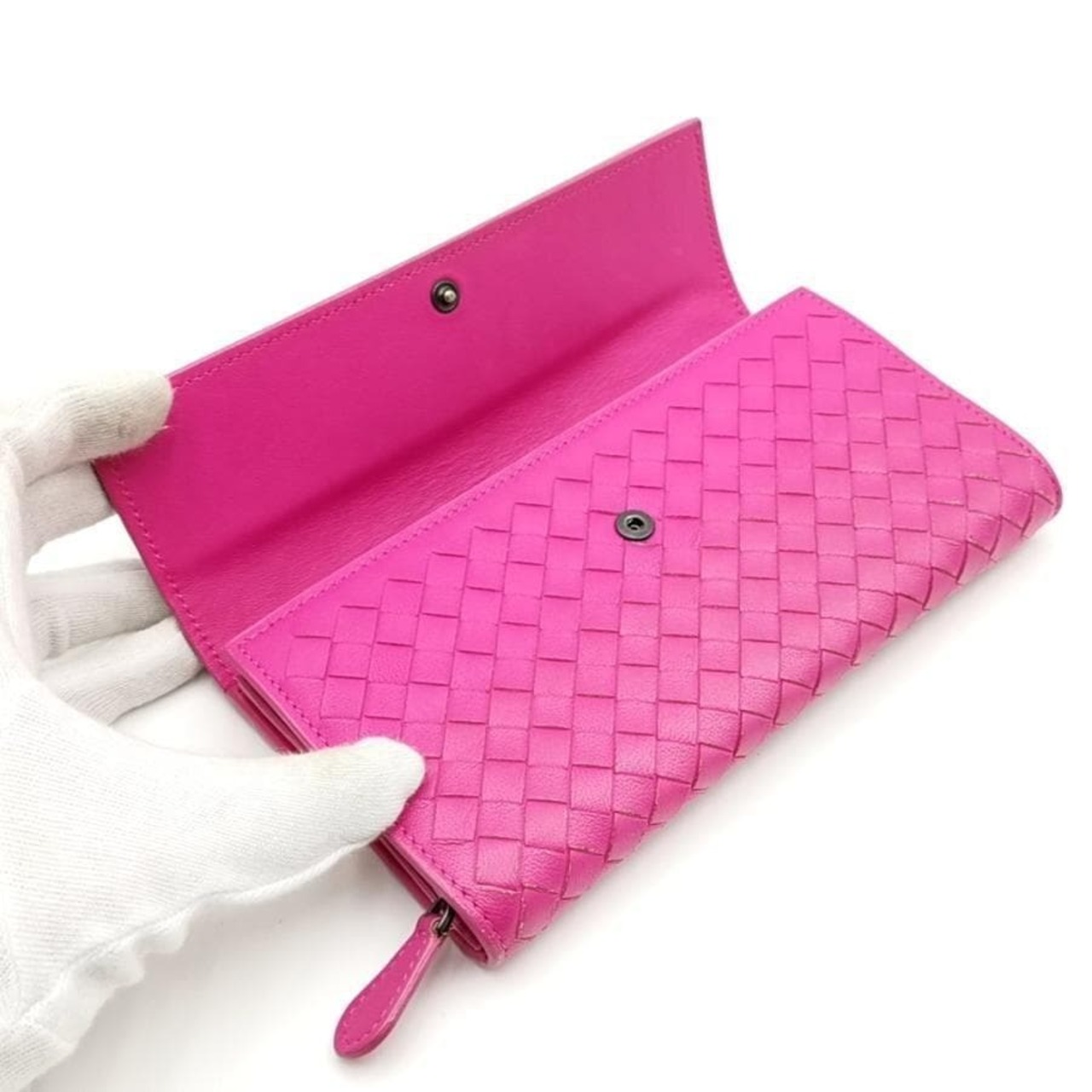 ・送料無料 ボッテガヴェネタ BOTTEGA VENETA 長財布 財布 二つ折り ロングウォレット イントレチャート B02121133W レザー 本革 伊製 イタリア製 ピンク系 レディース