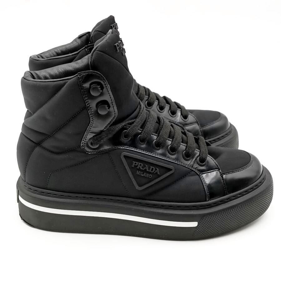 ・送料無料 美品 プラダ PRADA スニーカー 靴 シューズ Re-Nylon マクロ ハイトップ ハイカット 2TG183 伊製 イタリア製 7 1/2 26.5cm相当 黒 ブラック系 メンズ