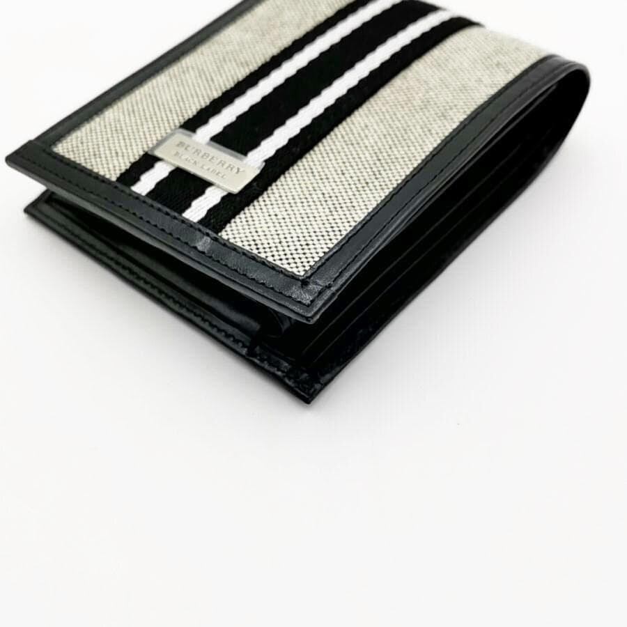 ・送料無料 バーバリーブラックレーベル BURBERRY BLACK LABEL 財布 二つ折り キャンバス レザー BKS26-700-05 ロゴプレート 灰 グレー系 メンズ