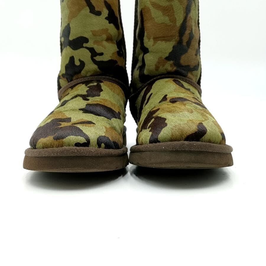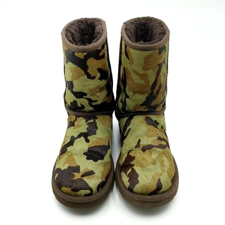 ・送料無料 美品 アグ UGG クラシックショートブーツ ムートンブーツ 靴 シューズ CLASSIC SHORT ROWLAND 迷彩柄 カモフラ カモ柄 1003389 24cm カーキ系 レディース