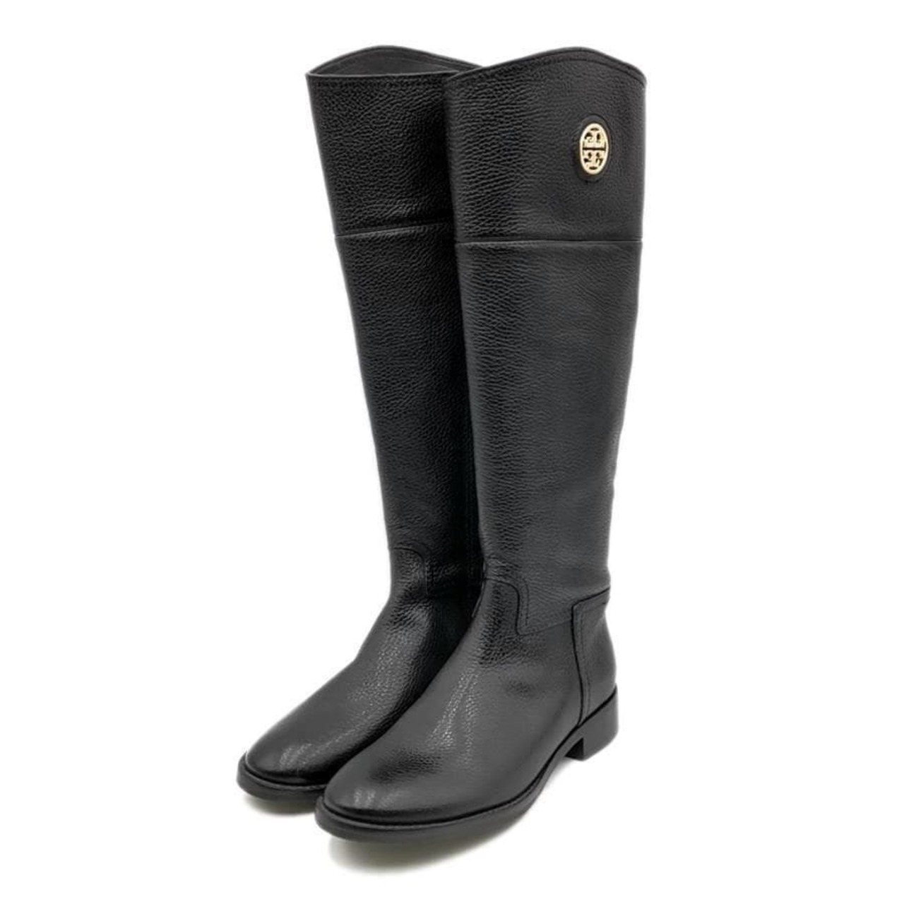 ・送料無料 超美品 トリーバーチ TORY BURCH ロングブーツ 靴 シューズ 32348 5930-E-16 50 サイドジップ ジョッキーブーツ レザー 本革 6M 23cm相当 黒 ブラック系 レディース