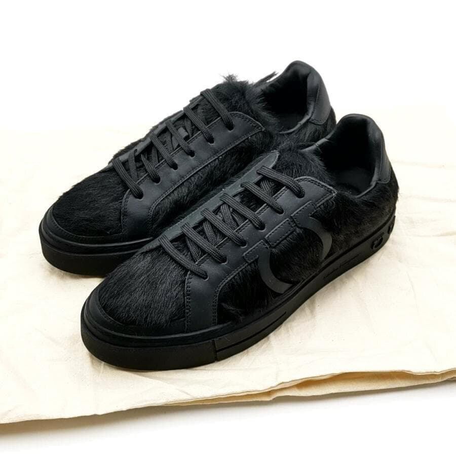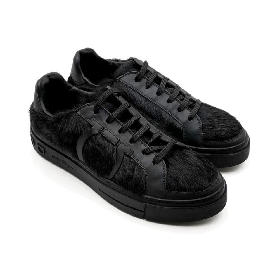 ・送料無料 超美品 サルヴァトーレフェラガモ Salvatore Ferragamo スニーカー 靴 シューズ TZ57275 ハラコ レザー 本革 ローカット レースアップ 伊製 イタリア製 6M 23cm相当 黒 ブラック系 レディース