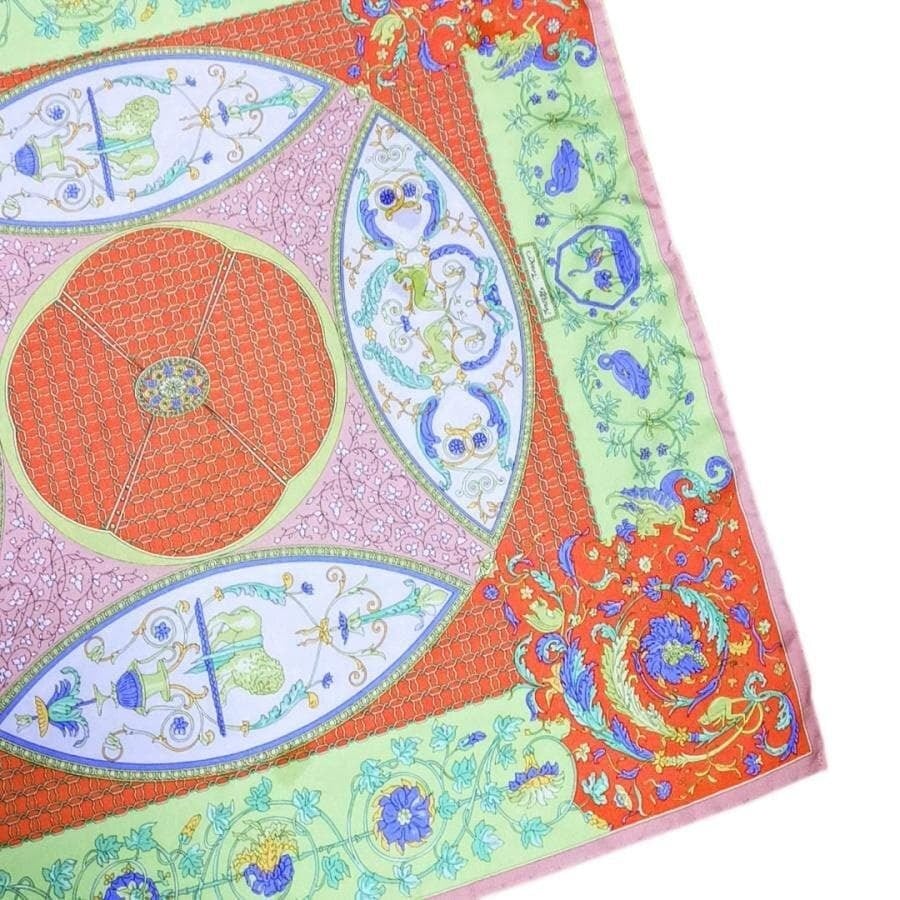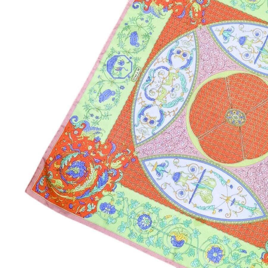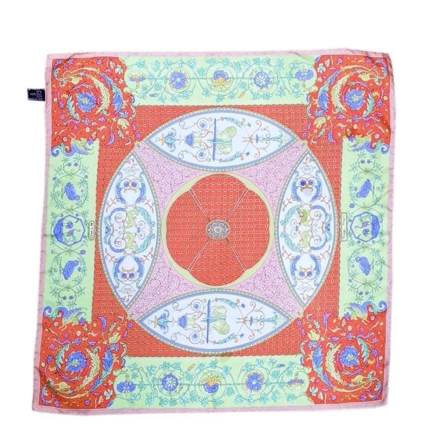 ・送料無料 超美品 エトロ ETRO スカーフ ショール 絹 シルク100% 総柄 伊製 イタリア製 橙 オレンジ系 レディース