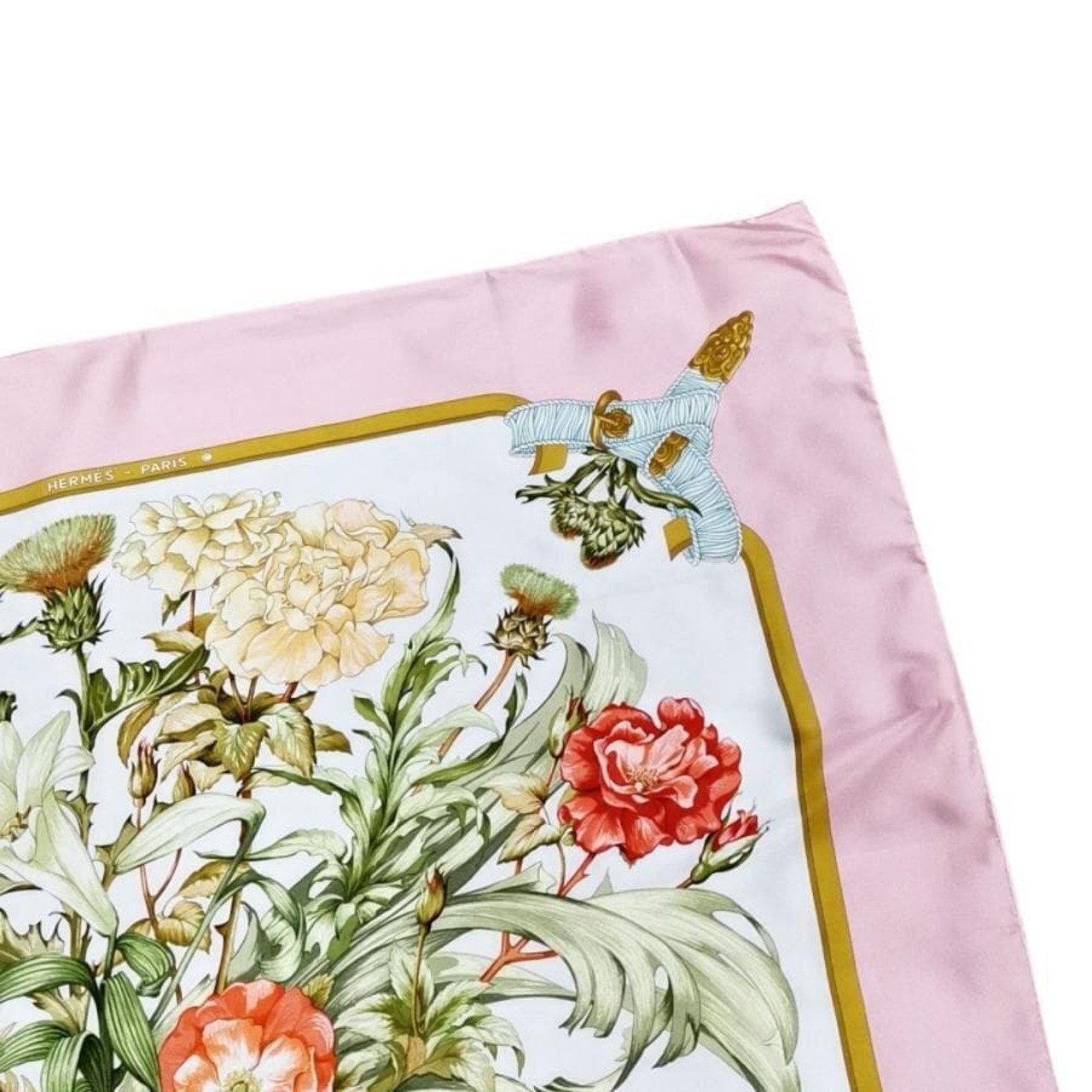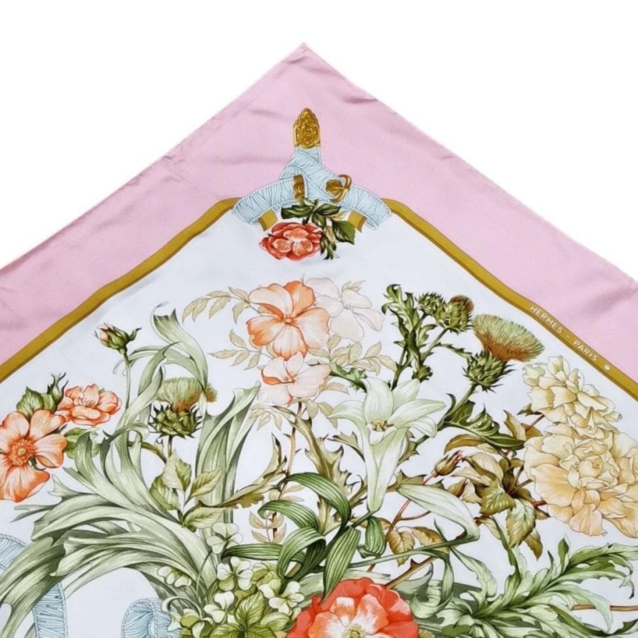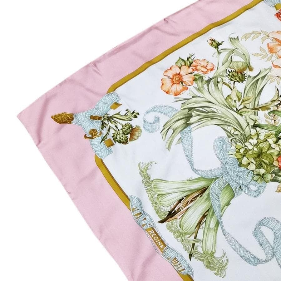 ・送料無料 美品 エルメス HERMES スカーフ 大判 ショール カレ90 REGINA 女王陛下 絹 シルク100% ピンク系 レディース