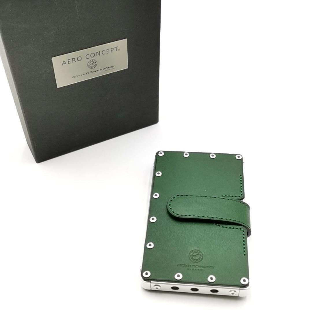 ・送料無料 超美品 エアロコンセプト AERO CONCEPT 名刺入れ カードケース レザー 本革 革張り EM-10-G(B) 緑 グリーン系 メンズ
