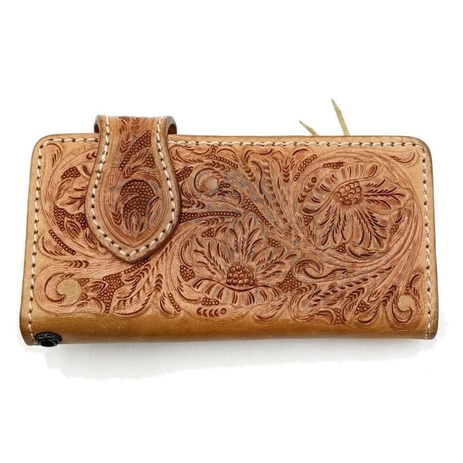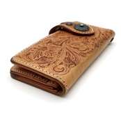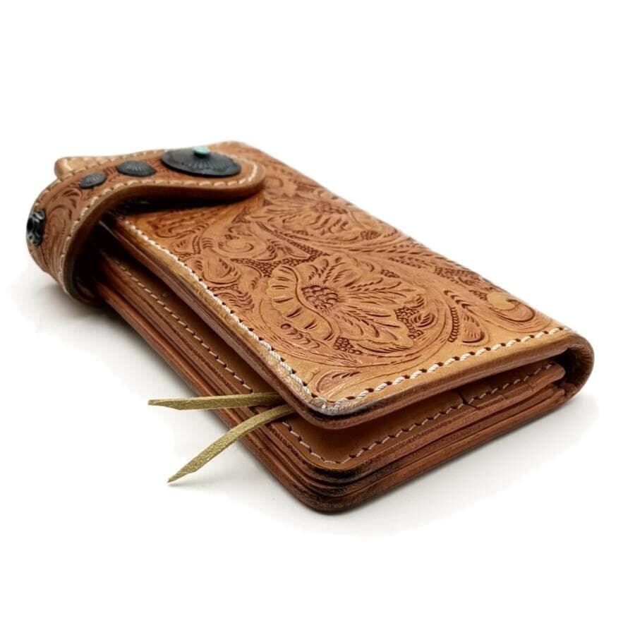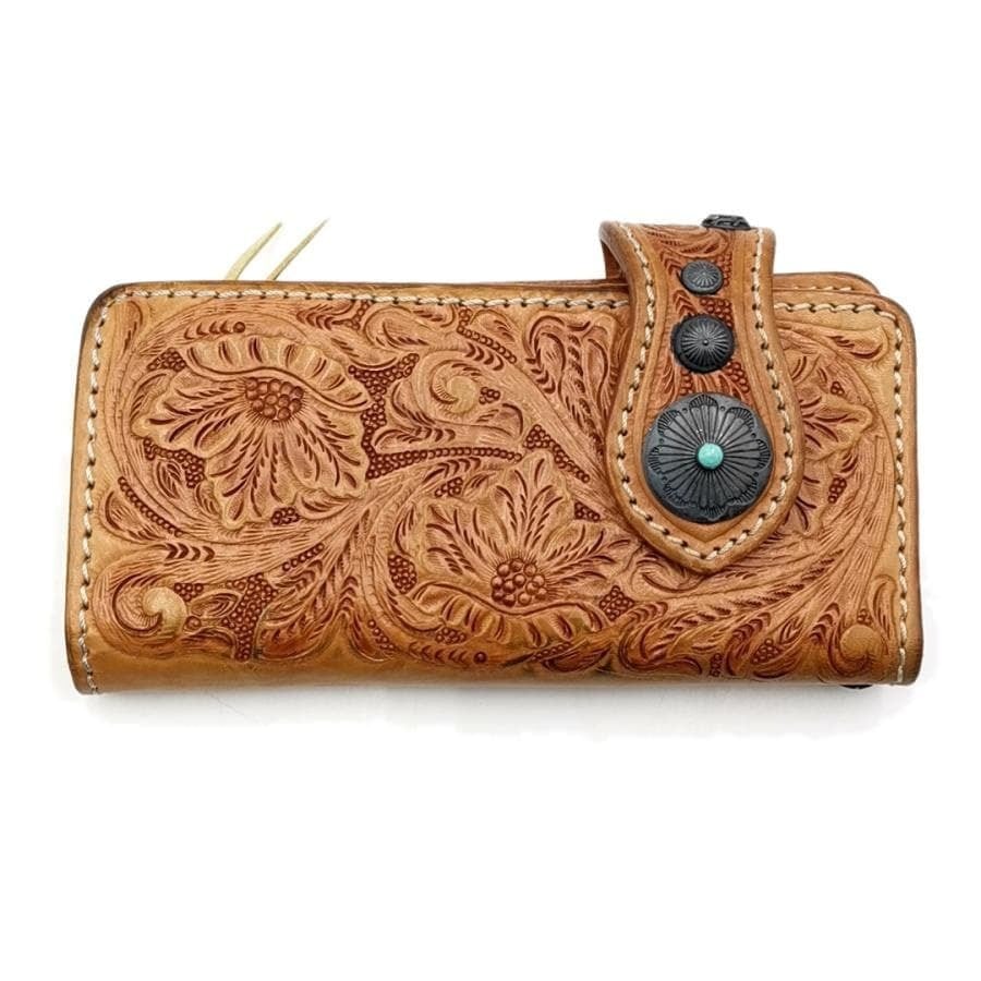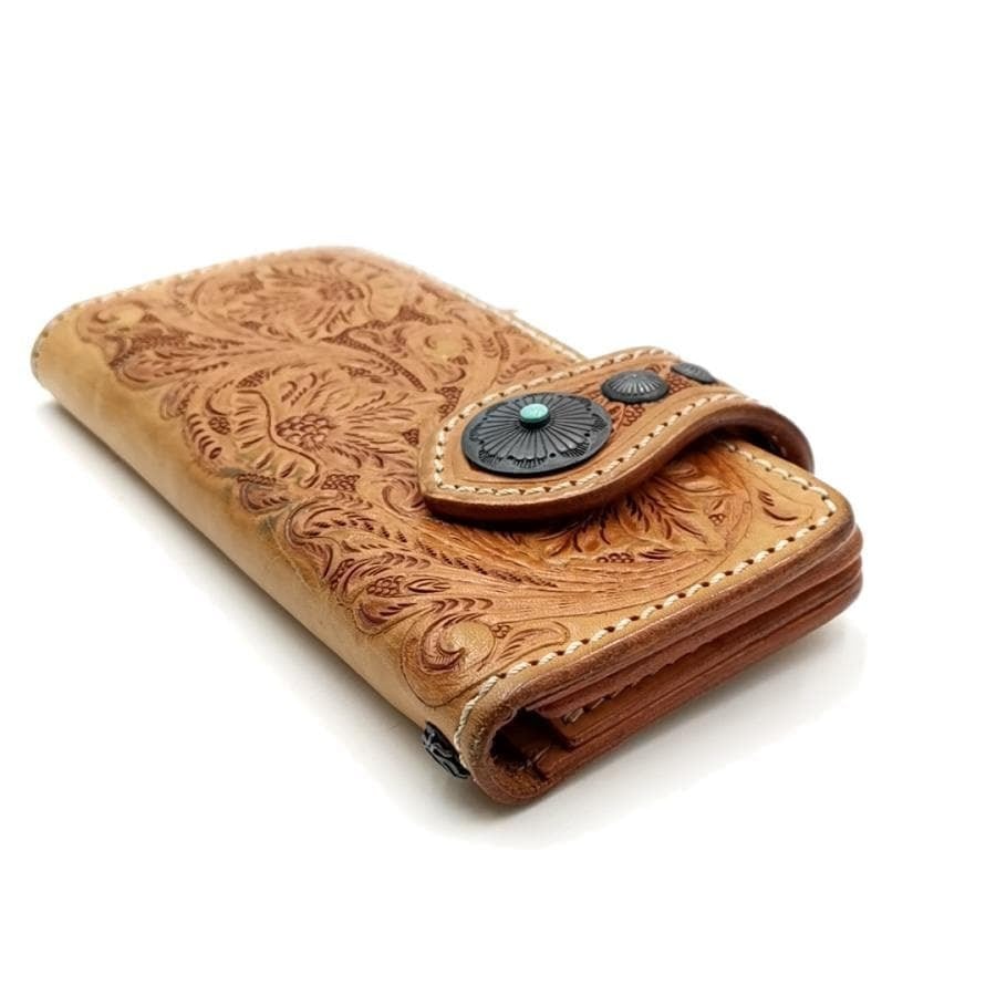 ・送料無料 ゴダン GODANE バイカーズウォレット 長財布 財布 ロングウォレット 二つ折り レザー 本革 コンチョ ターコイズ 茶 ブラウン系 メンズ