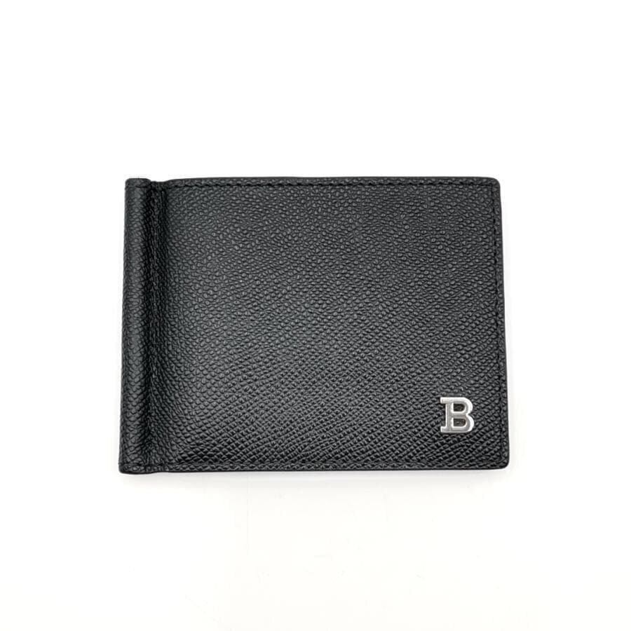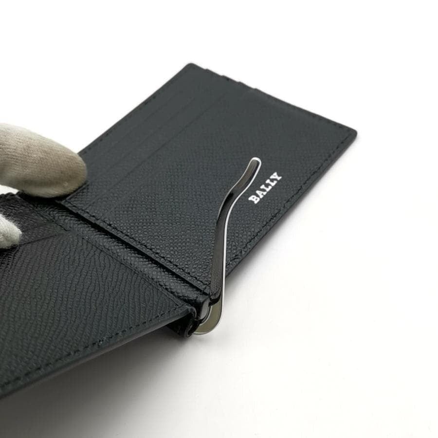 ・送料無料 超美品 バリー BALLY マネークリップ 財布 二つ折り カードケース レザー 本革 黒 ブラック系 メンズ