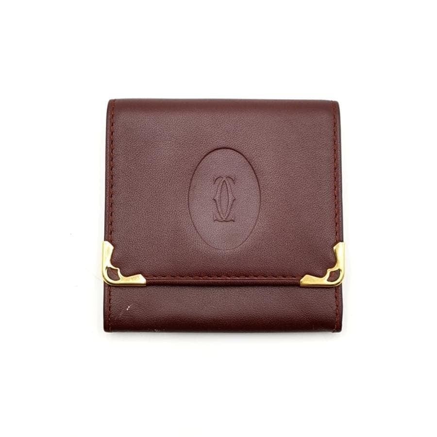 ・送料無料 超美品 カルティエ Cartier コインケース 小銭入れ 財布 マストライン レザー 本革 ボルドー系 レディース
