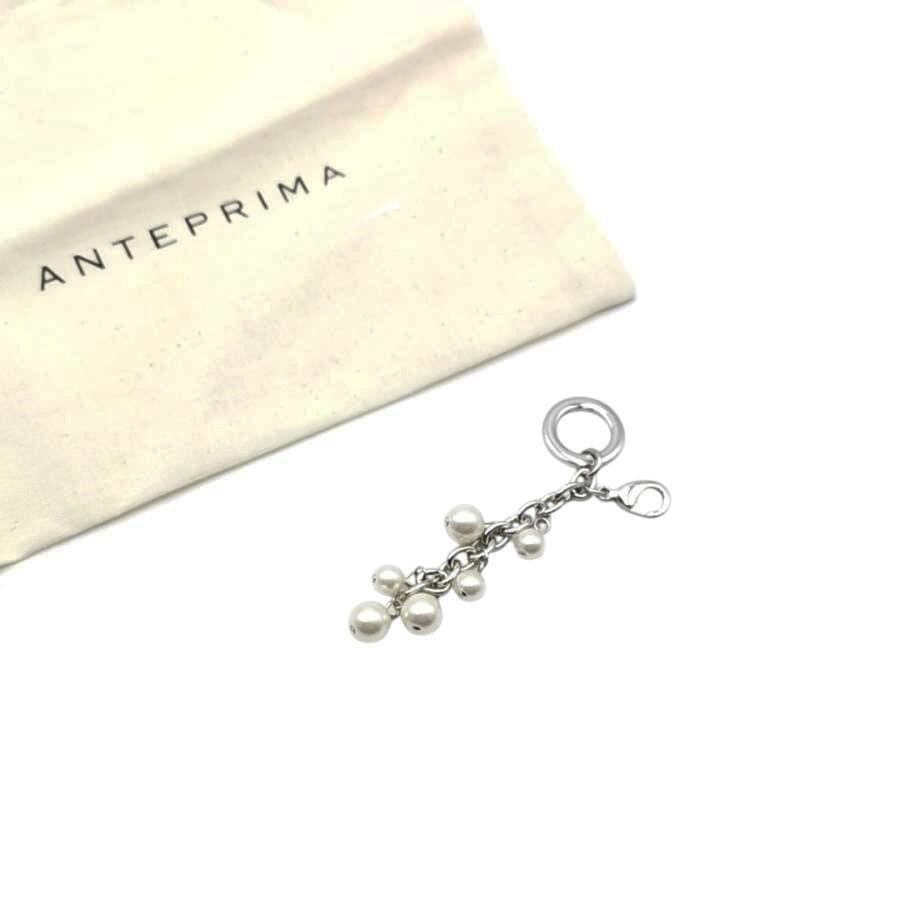 ・送料無料 超美品 アンテプリマ ANTE PRIMA バッグチャーム キーホルダー ファスナーチャーム パール シルバー系 レディース