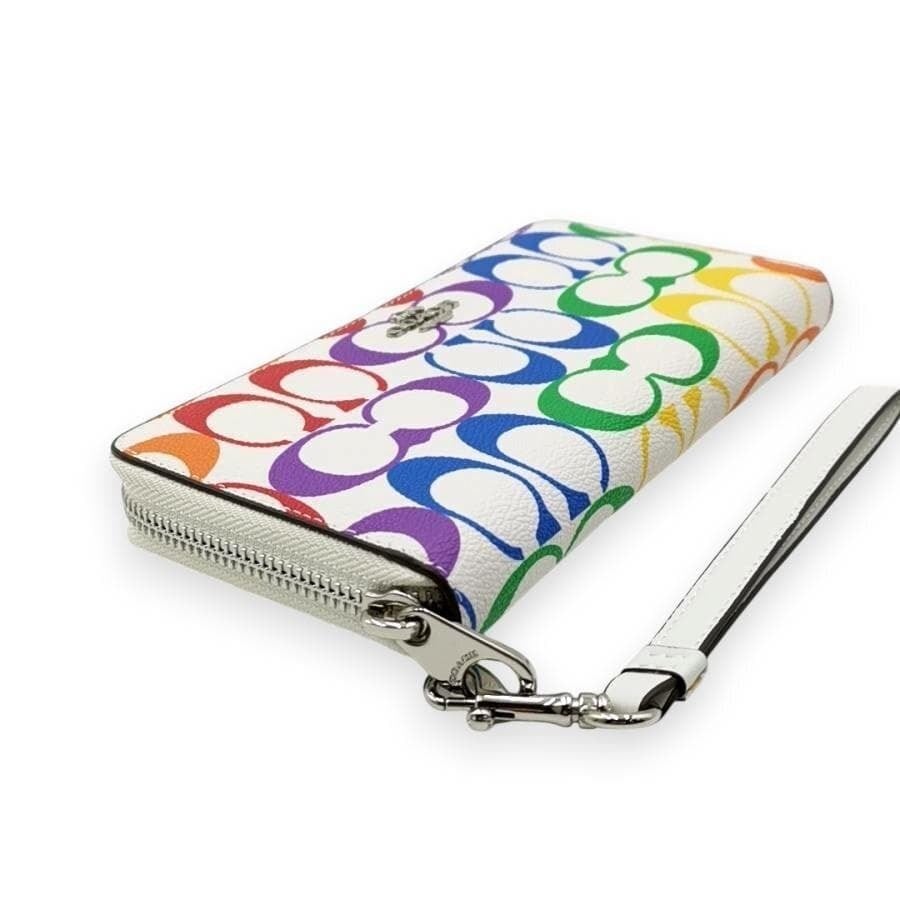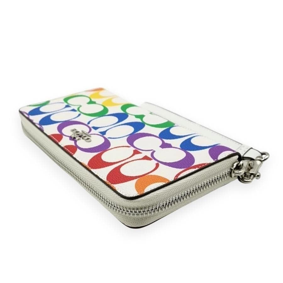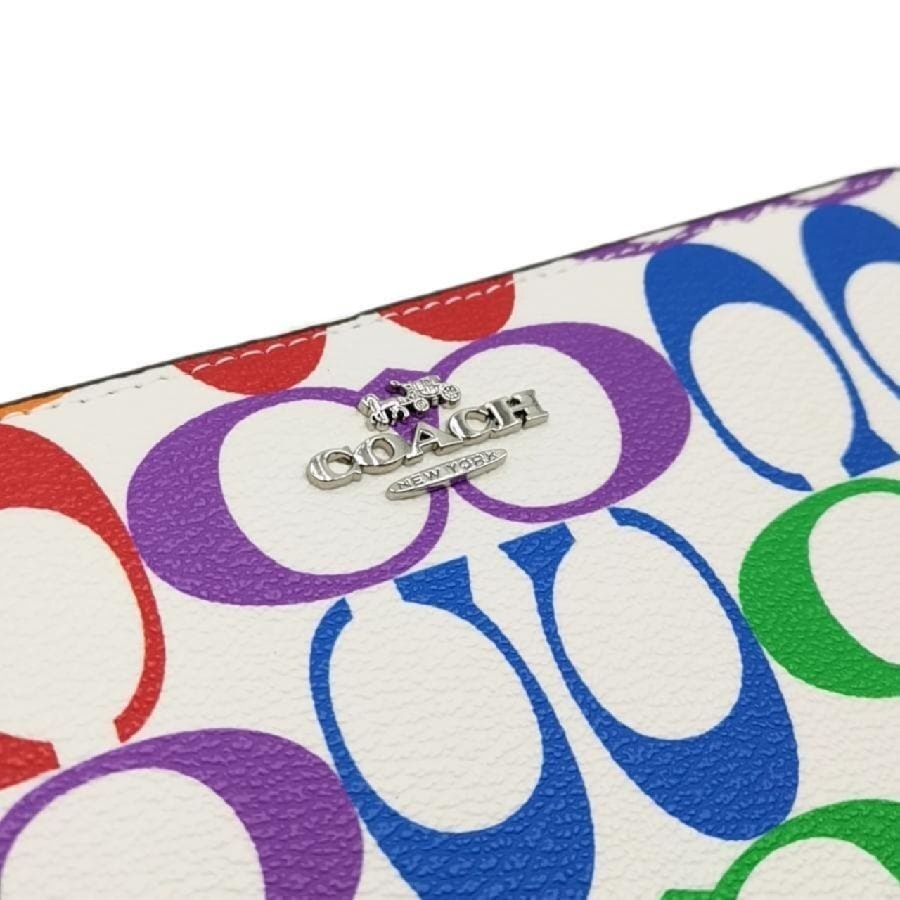 ・送料無料 超美品 コーチ COACH 長財布 財布 ラウンドファスナー ラウンドジップ ロングウォレット L1592 C4537 レインボー シグネチャー コーテッド キャンバス レディース