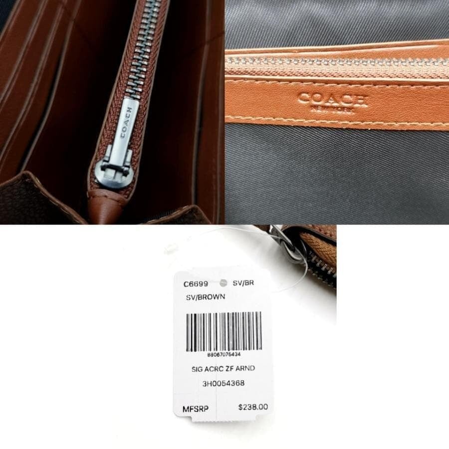 ・送料無料 超美品 コーチ COACH 長財布 財布 ラウンドファスナー ラウンドジップ ロングウォレット B1844 C6699 ポリッシュド ペブル レザー 本革 茶 ブラウン系 レディース