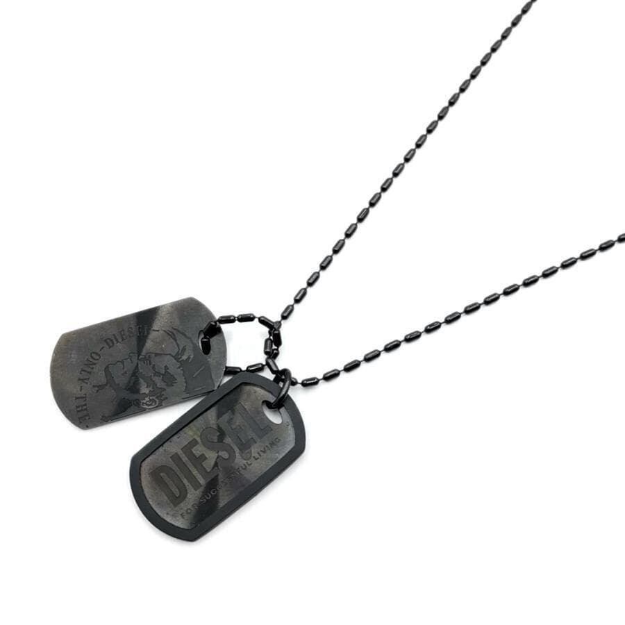 ・送料無料 超美品 ディーゼル DIESEL ネックレス ペンダント アクセサリー 小物 DX0014040 ドッグタグ プレート 黒 ブラック系 メンズ