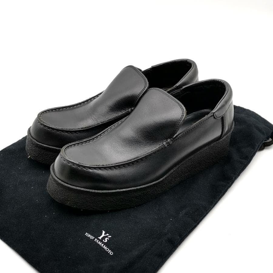・送料無料 ワイズ ヨウジヤマモト Y's Yohji Yamamoto プラットホームスリッポン 厚底 靴 シューズ YN-E07-763-1/4 スムースレザー 本革 日本製 23cm相当 黒 ブラック系 レディース