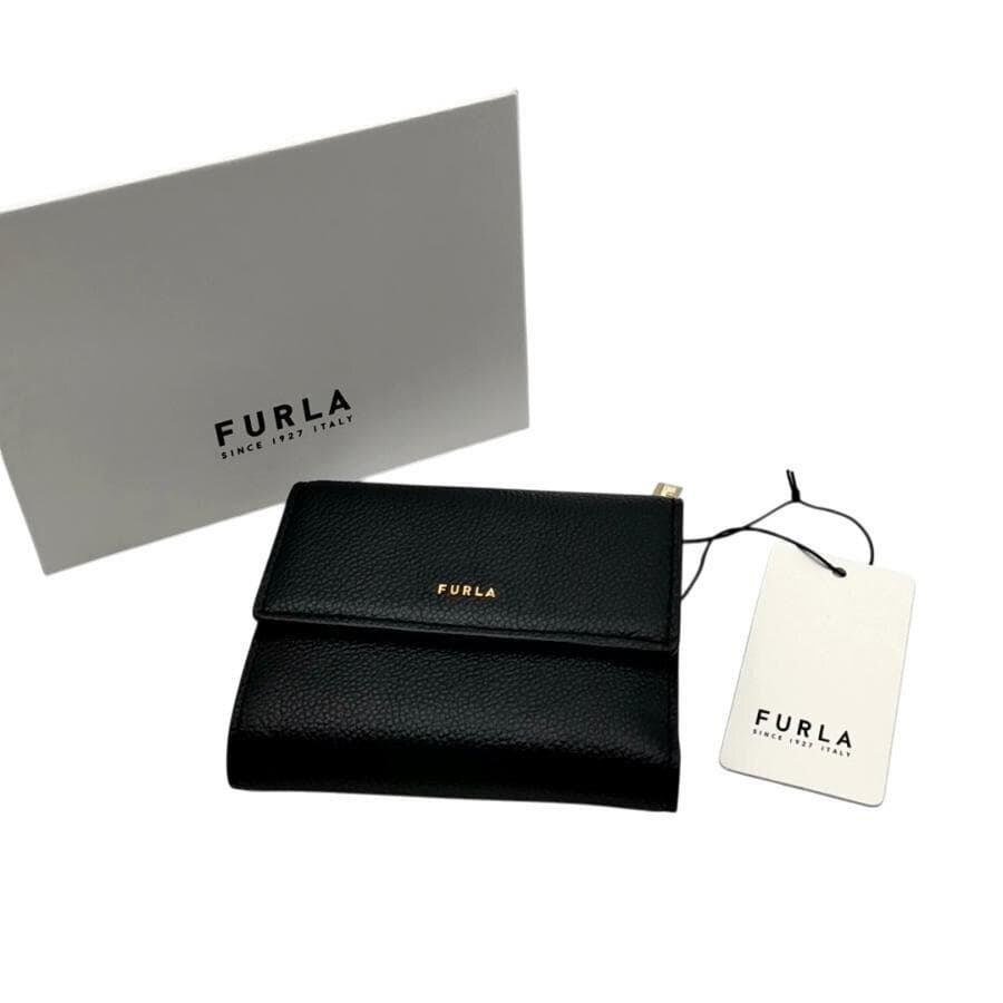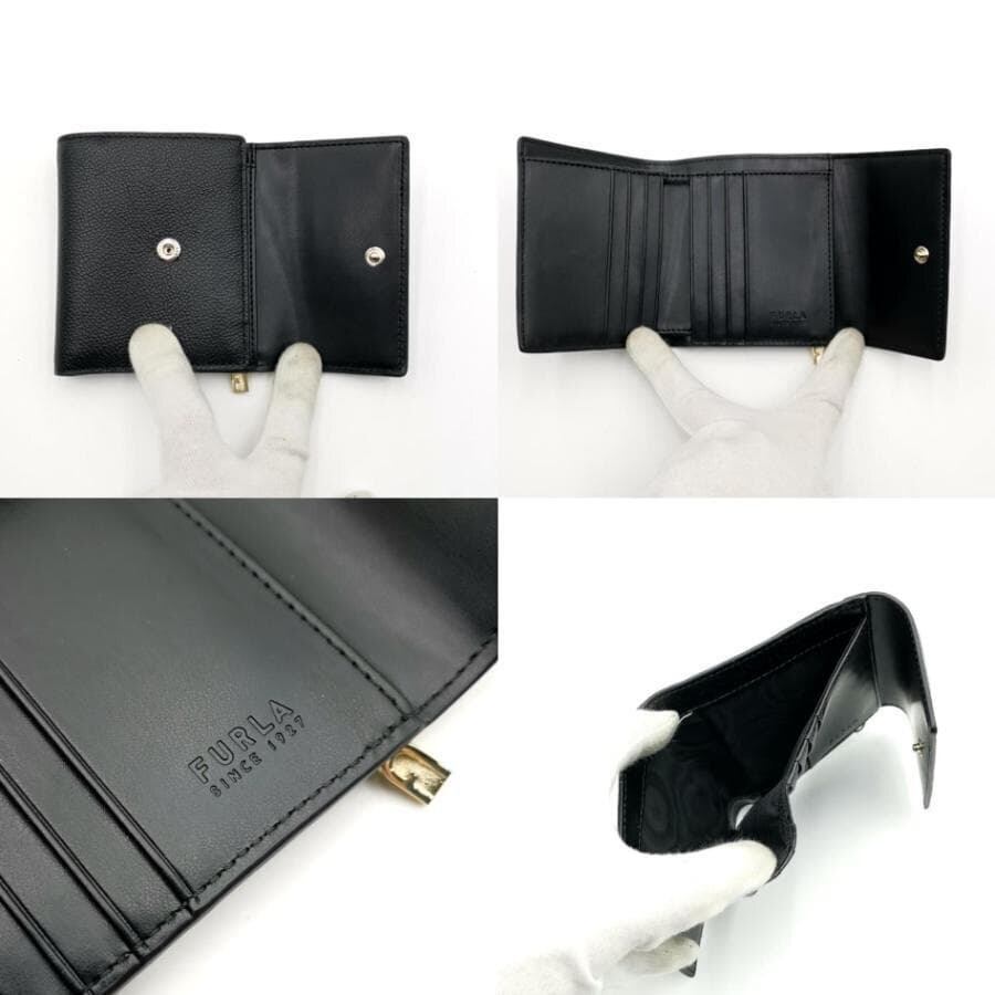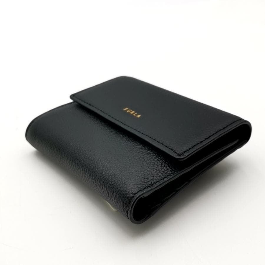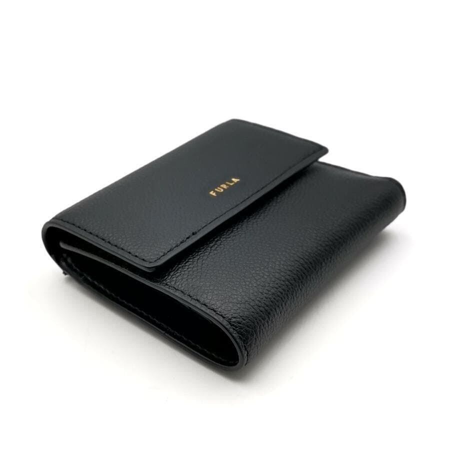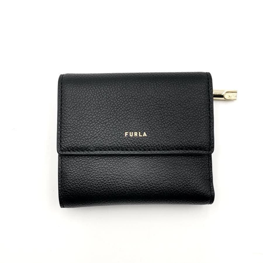 ・送料無料 超美品 フルラ FURLA 財布 三つ折り コンパクトウォレット ミニ財布 WP00469 BX3036 06000 1 007 20 KH レザー 本革 GOCCIA ゴッチャ 黒 ブラック系 レディース