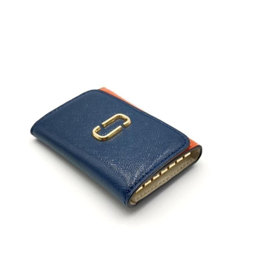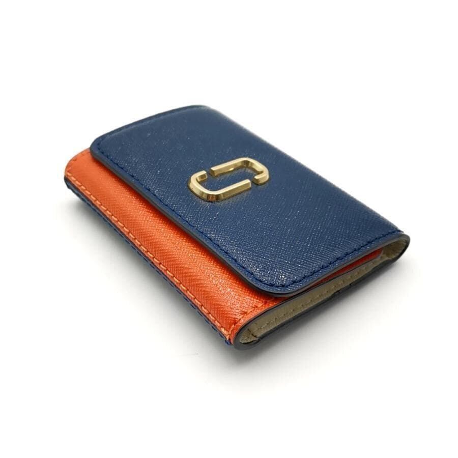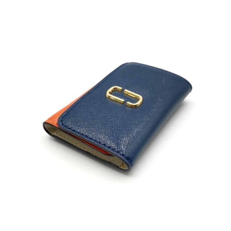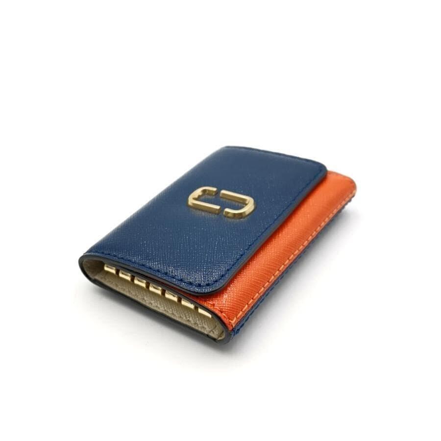 ・送料無料 超美品 マークジェイコブス MARC JACOBS 6連キーケース キーホルダー 三つ折り SNAPSHOT スナップショット カラーブロック ダブルJ カーフレザー 本革 青 ブルー系 橙 オレンジ系 レディース