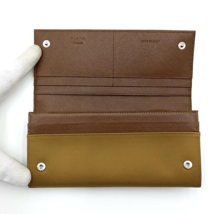 ・送料無料 超美品 プラダ PRADA 長財布 二つ折り ロングウォレット ポコノ ナイロンキャンバス M201 伊製 イタリア製 茶 ブラウン系 レディース