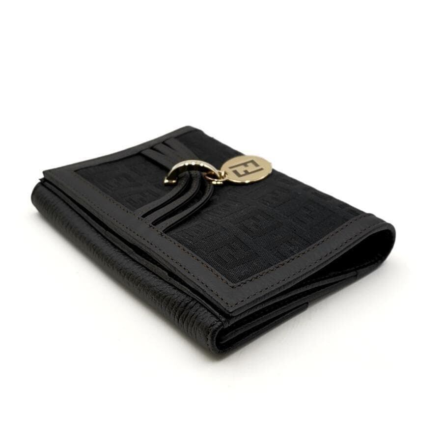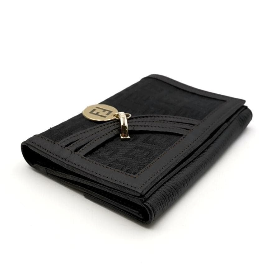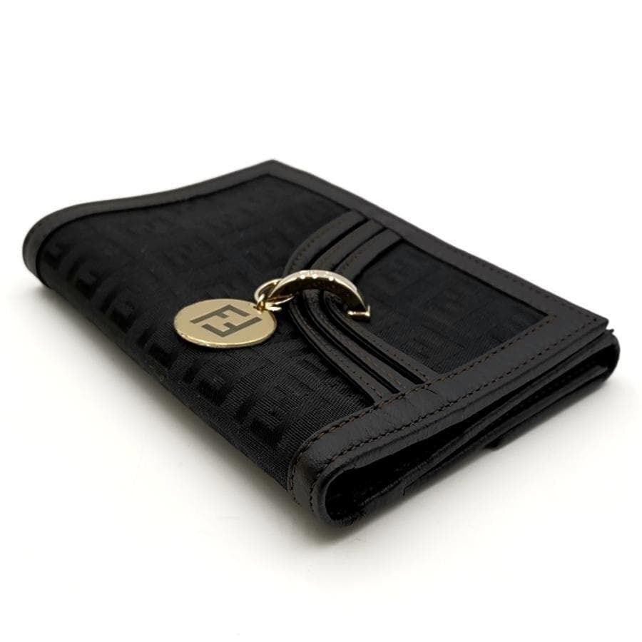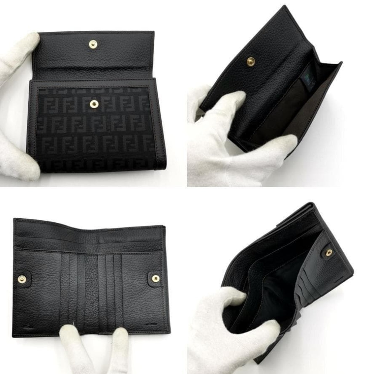 ・送料無料 超美品 フェンディ FENDI 財布 二つ折りミディアムウォレット ズッカ柄 キャンバス レザー A 407979 伊製 イタリア製 黒 ブラック系 レディース