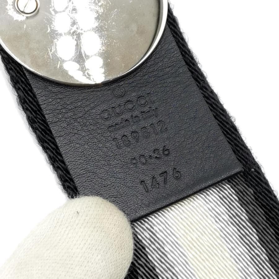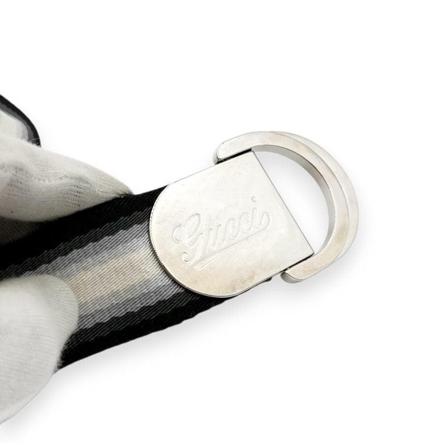 ・送料無料 グッチ GUCCI ベルト Dリング シェリーライン 189812-1476 伊製 イタリア製 ブラック系 ホワイト系 メンズ