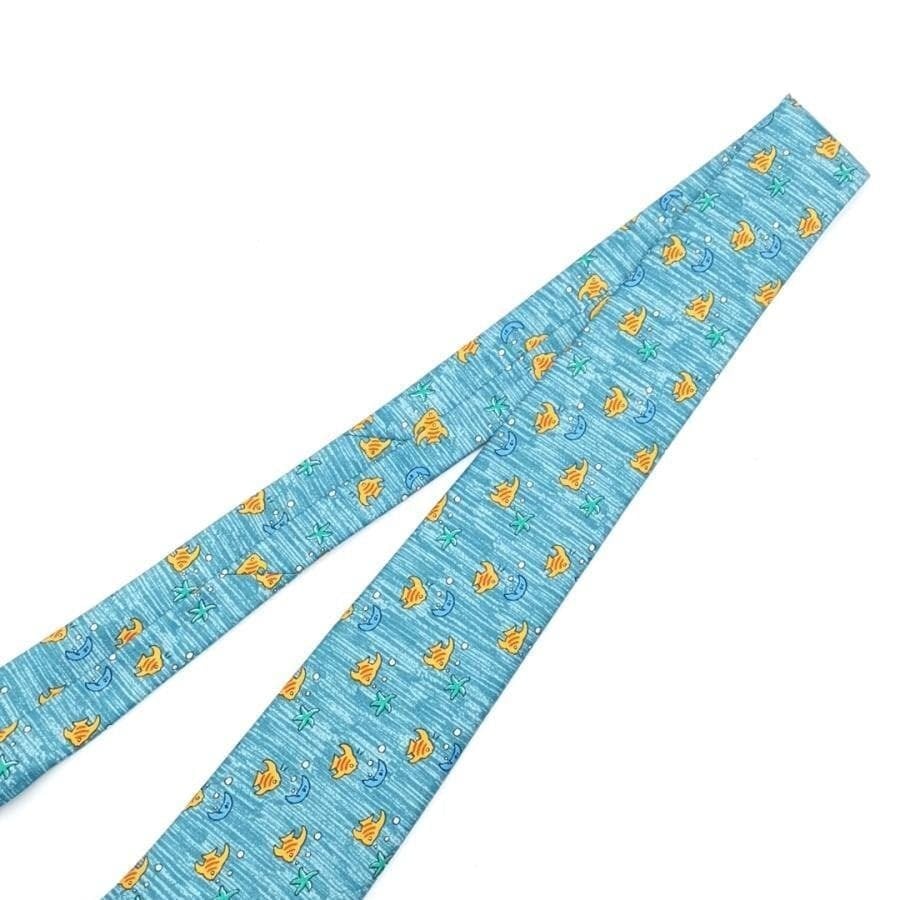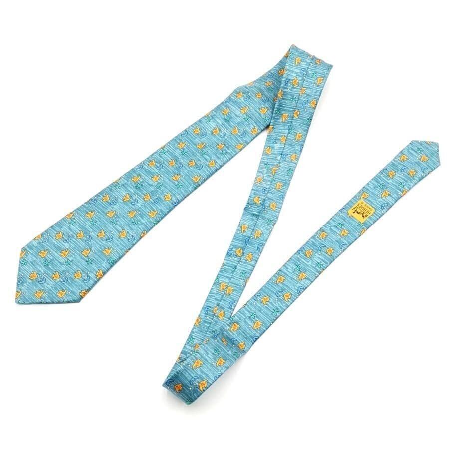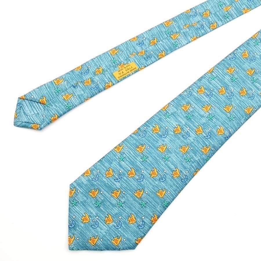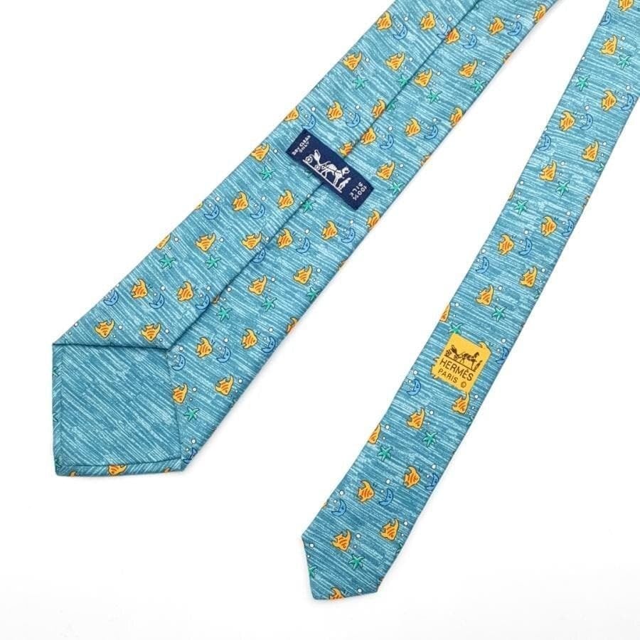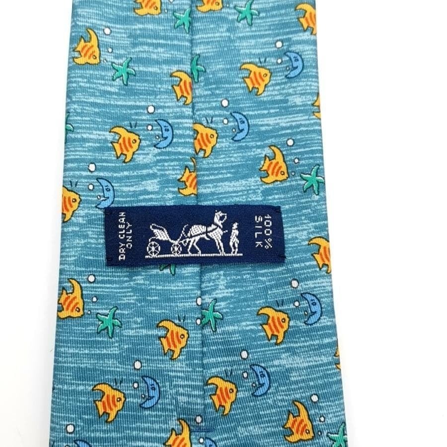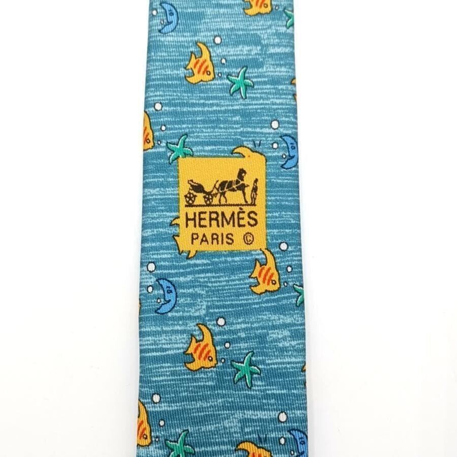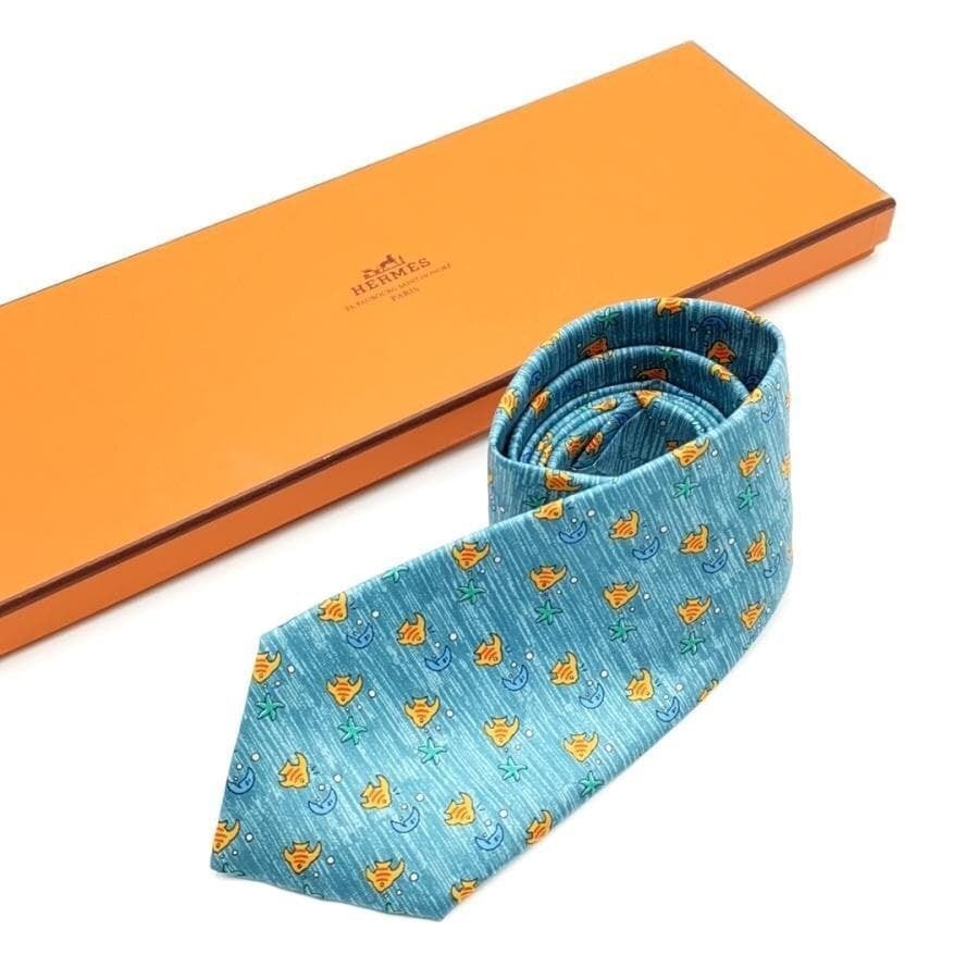・送料無料 超美品 エルメス HERMES ネクイタイ 7785-FA 絹 シルク100% 魚柄 仏製 フランス製 青 ブルー系 メンズ