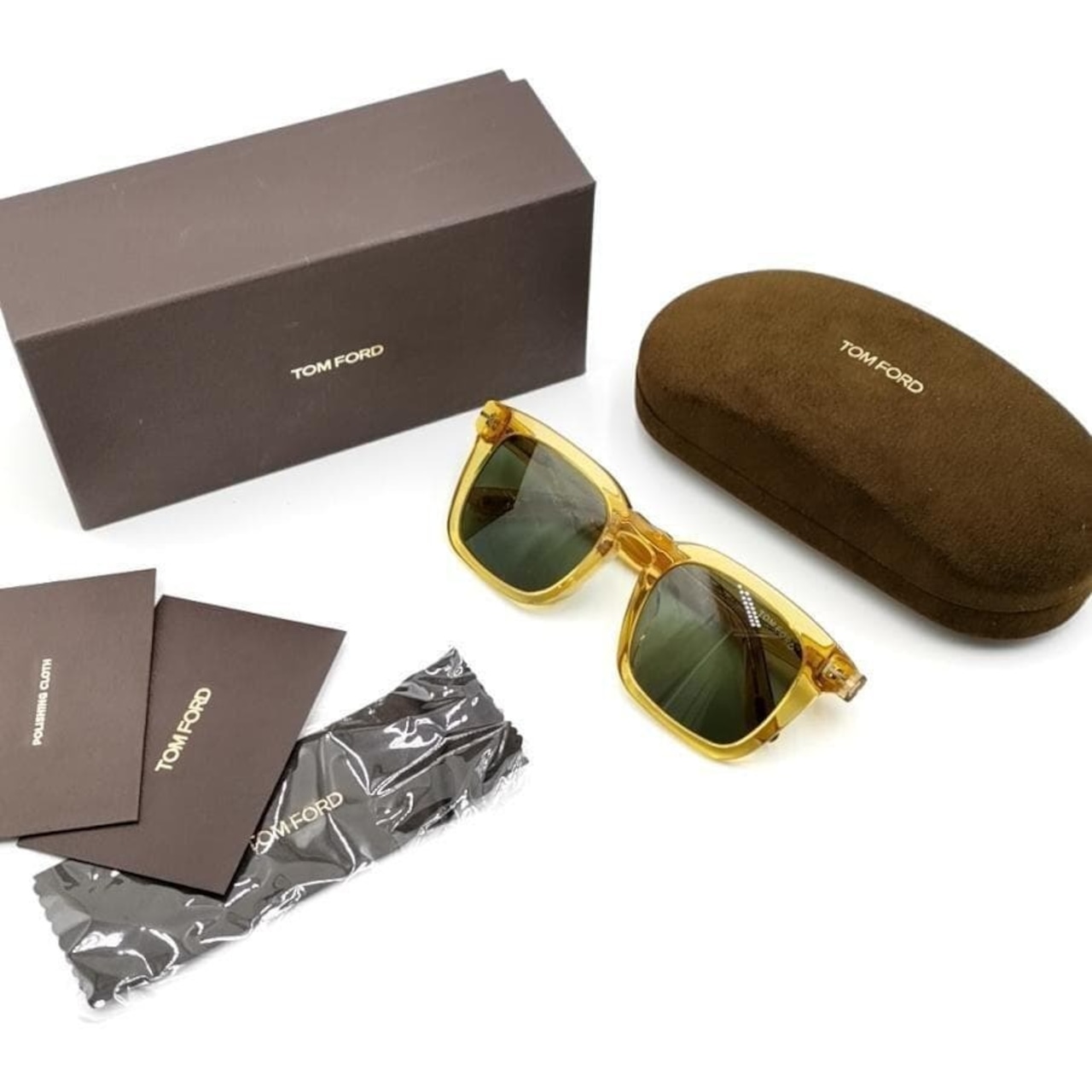 ・送料無料 超美品 トムフォード TOM FORD サングラス スクエア ウェリントンモデル Dax TF751-F 39N 53□22 145 伊製 イタリア製 黄 イエロー系 メンズ