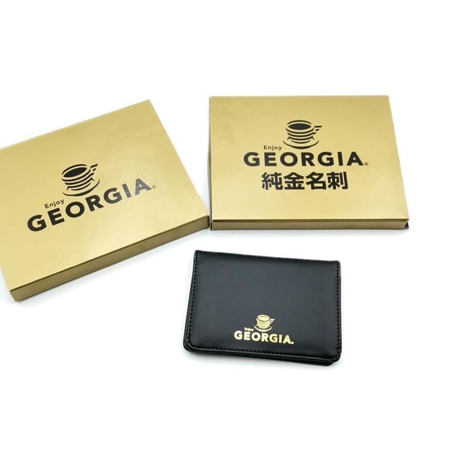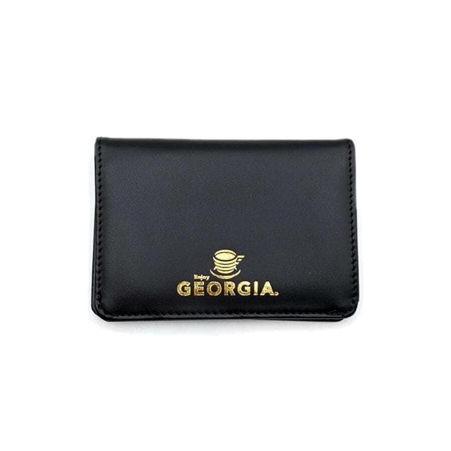 ・送料無料 超美品 ジョージア Georgia 名刺入れ カードケース カード入れ 二つ折り レザー 本革 黒 ブラック系 メンズ
