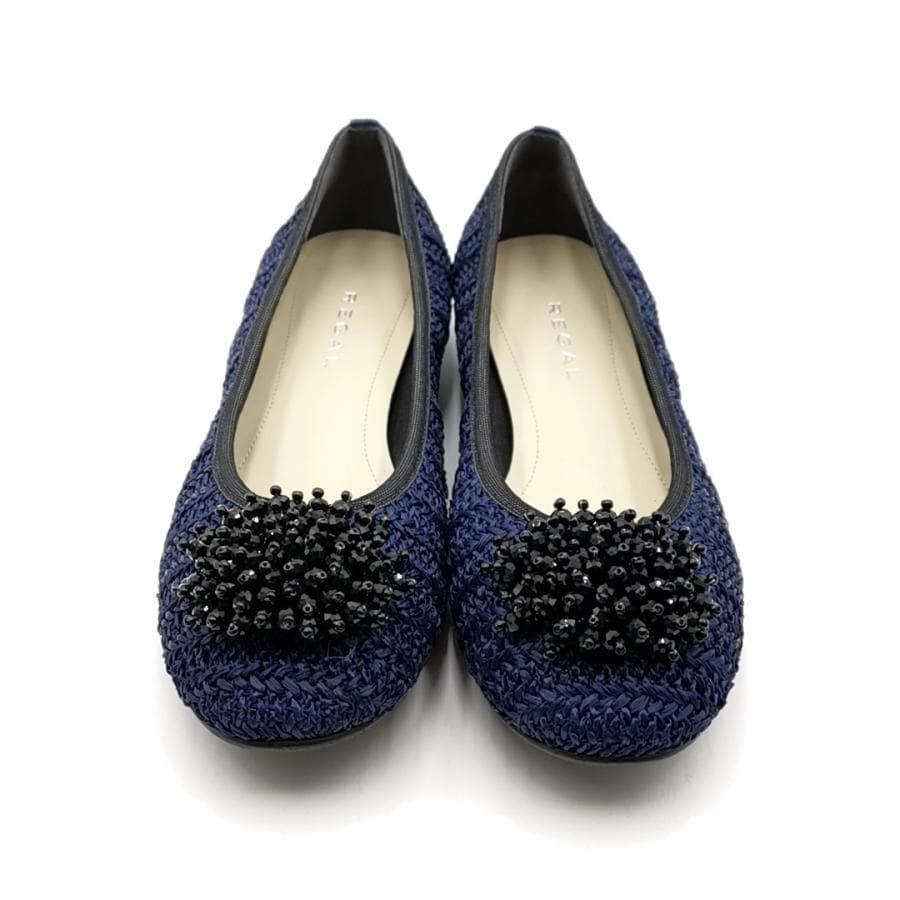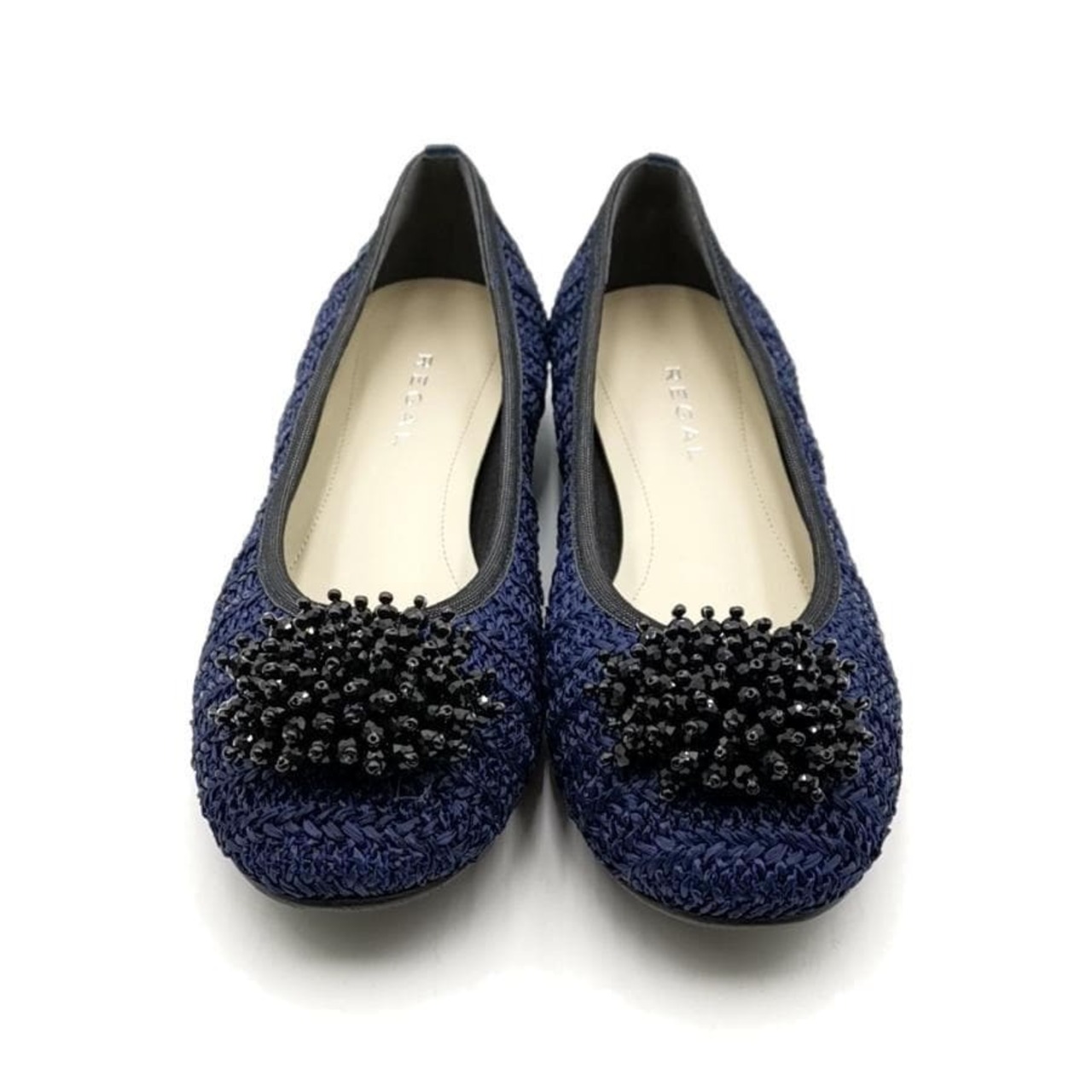 ・送料無料 超美品 リーガル REGAL フラットシューズ バレエシューズ F19H RN3K-E720 ツイード 23.5cm 青 ブルー系 レディース