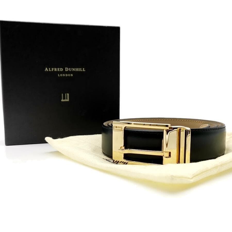 ・送料無料 超美品 ダンヒル dunhill レザーベルト BPS91A44 ハトメタイプ 伊製 イタリア製 44/112 黒 ブラック系 メンズ