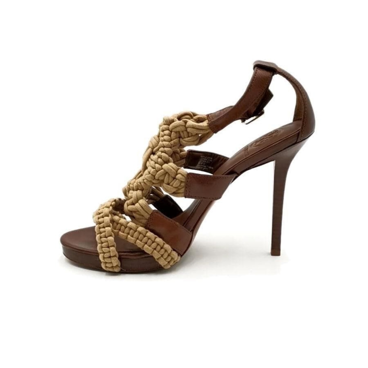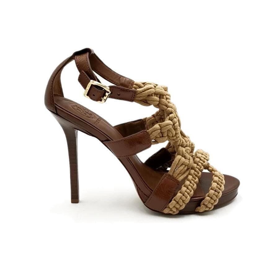 ・送料無料 超美品 トリーバーチ TORY BURCH サンダル 靴 シューズ 11128654 ハイヒール ピンヒール 9M 26cm相当 茶 ブラウン系 レディース