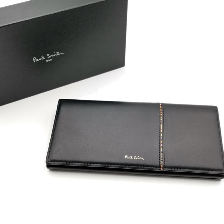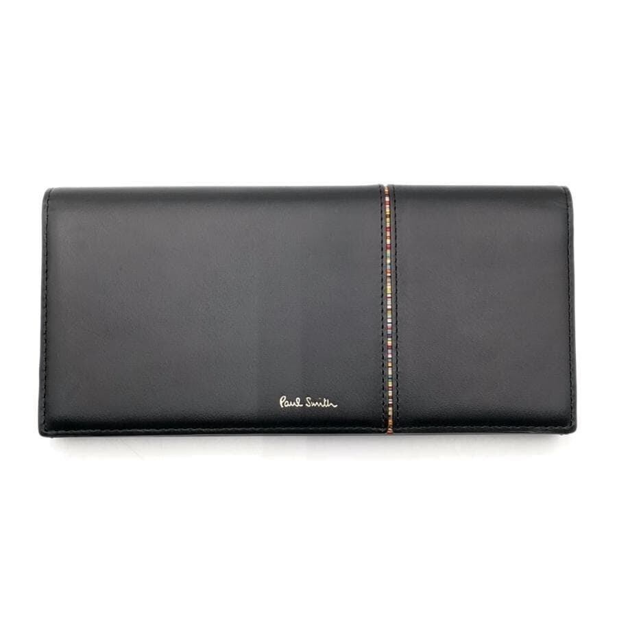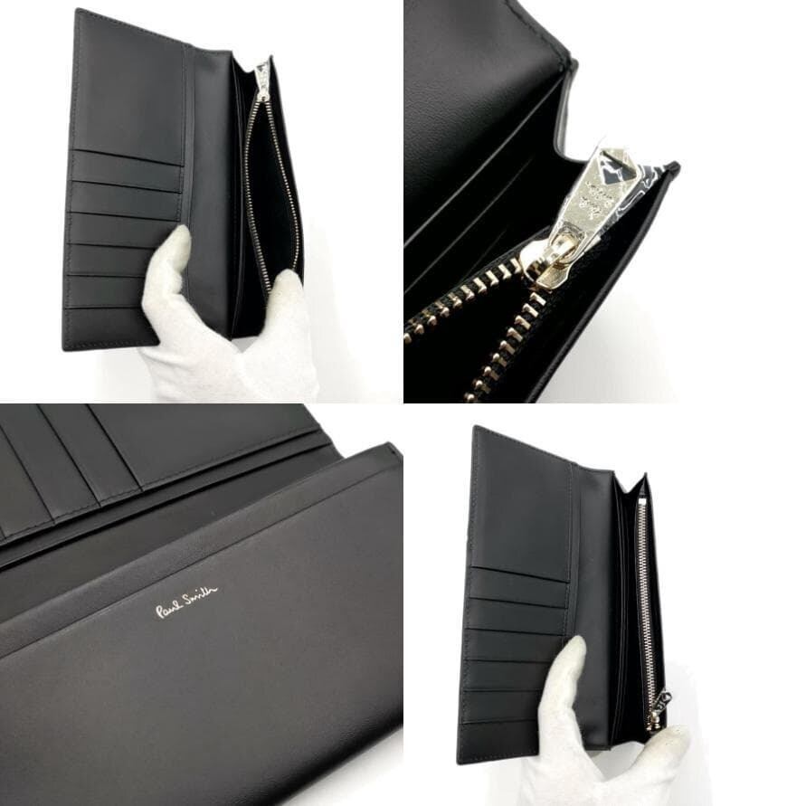 ・送料無料 超美品 ポールスミス Paul Smith 長財布 財布 二つ折り ロングウォレット 30PA 813-025 G134 レザー 本革 黒 ブラック系 メンズ