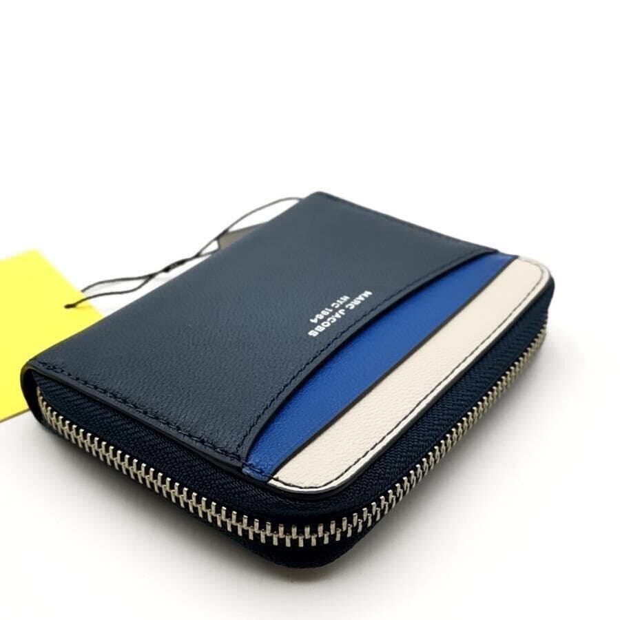 ・送料無料 超美品 マークジェイコブス MARC JACOBS コインケース カードケース 小銭入れ 財布 スリム 84 SLIM 84 ザ ジップ アラウンド ウォレット SI67L03FA22-455 レザー 本革 山羊革 紺 ネイビー系 レディース