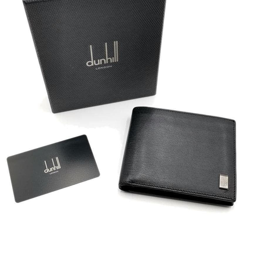 ・送料無料 超美品 ダンヒル dunhill 財布 二つ折り ミディアムウォレット L2F232A SIDE CAR サイドカー レザー 本革 黒 ブラック系 メンズ