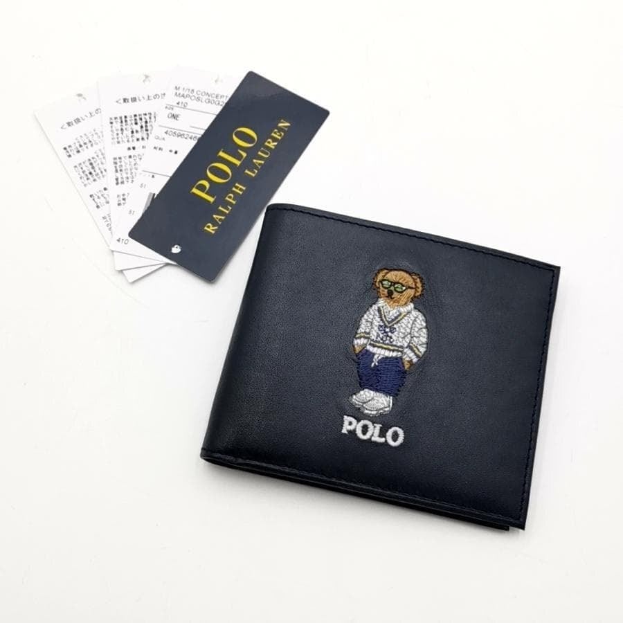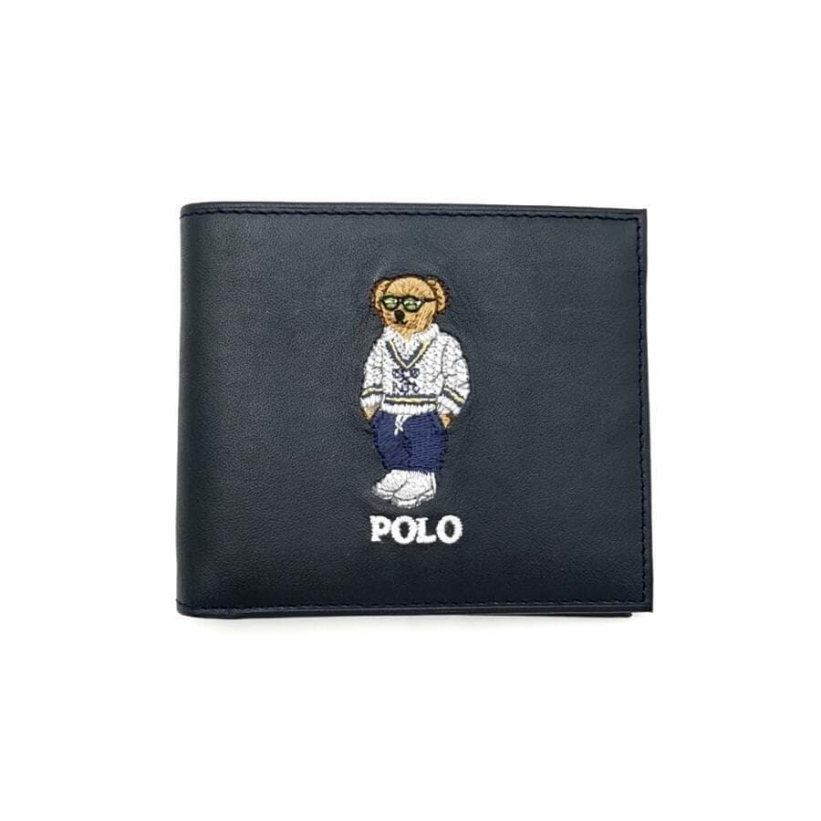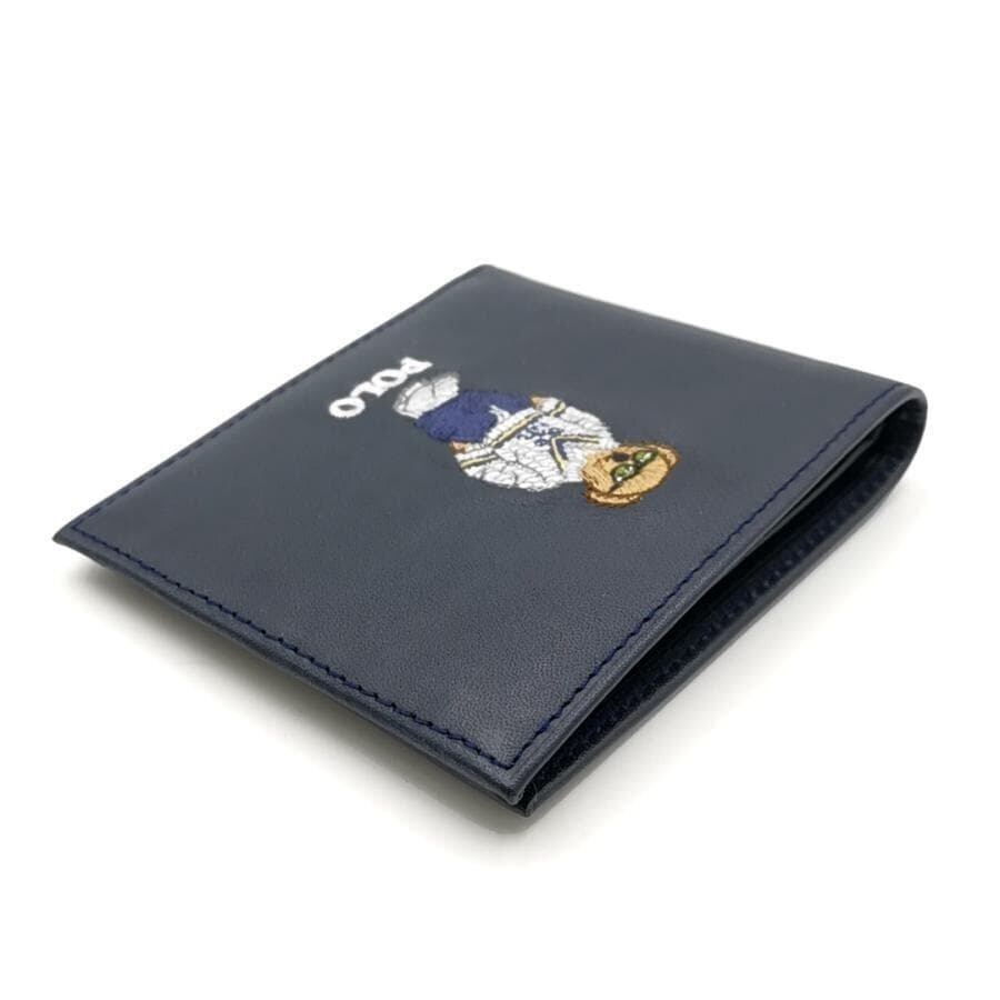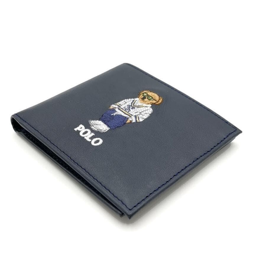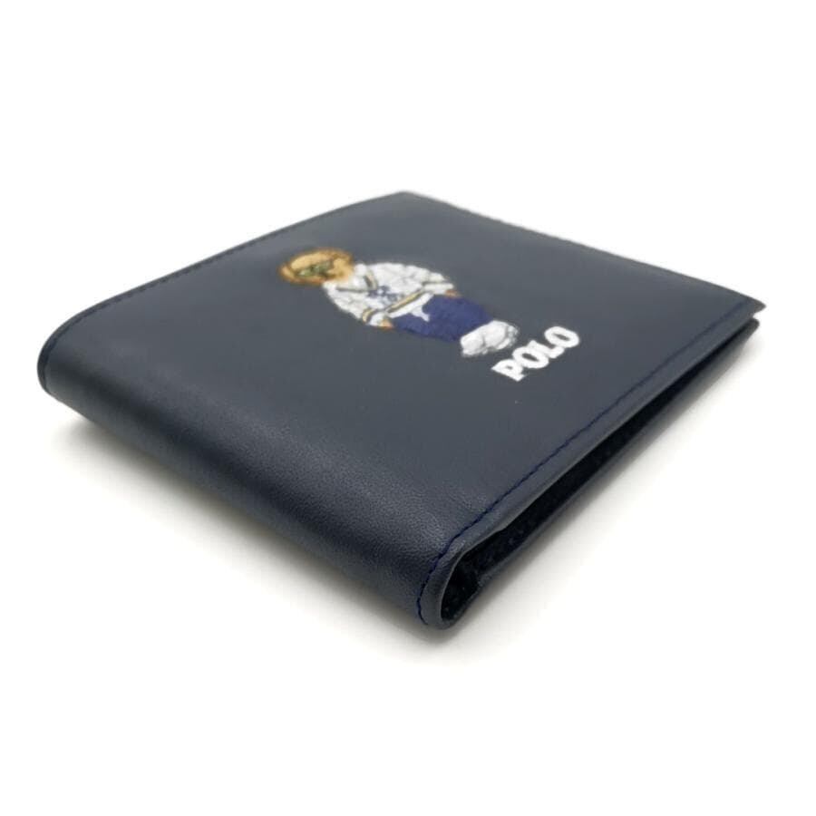 ・送料無料 超美品 ポロ ラルフローレン POLO RALPH LAUREN 財布 札入れ 二つ折り ポロベア クマ 熊 MAPOSLG0G220321 レザー 本革 紺 ネイビー系 メンズ