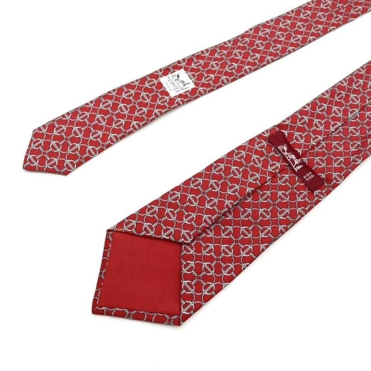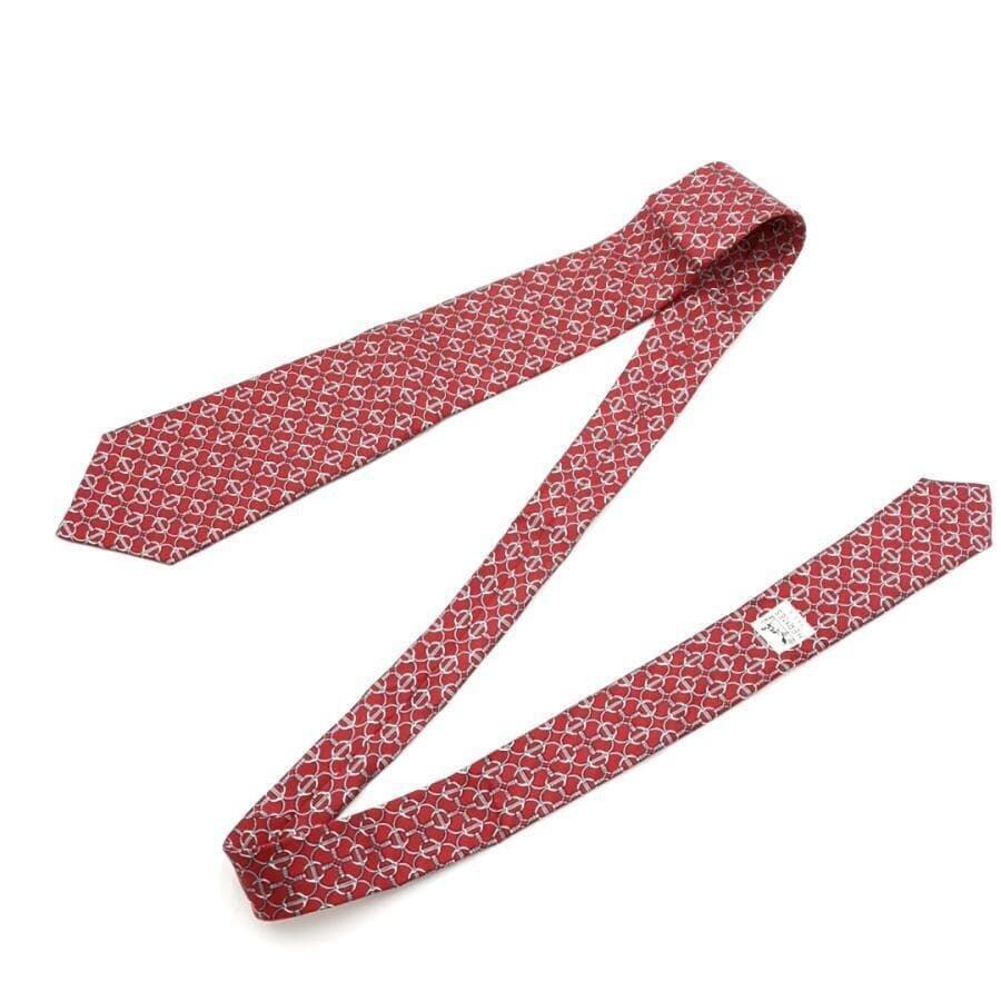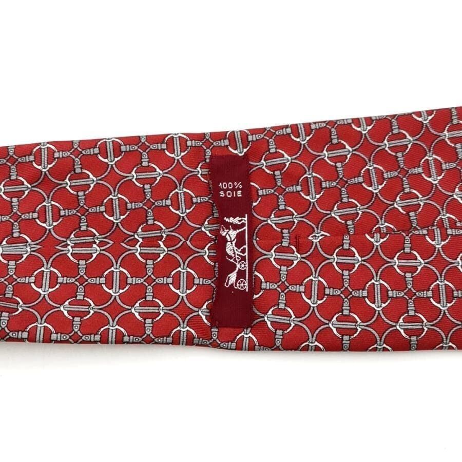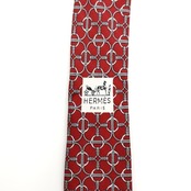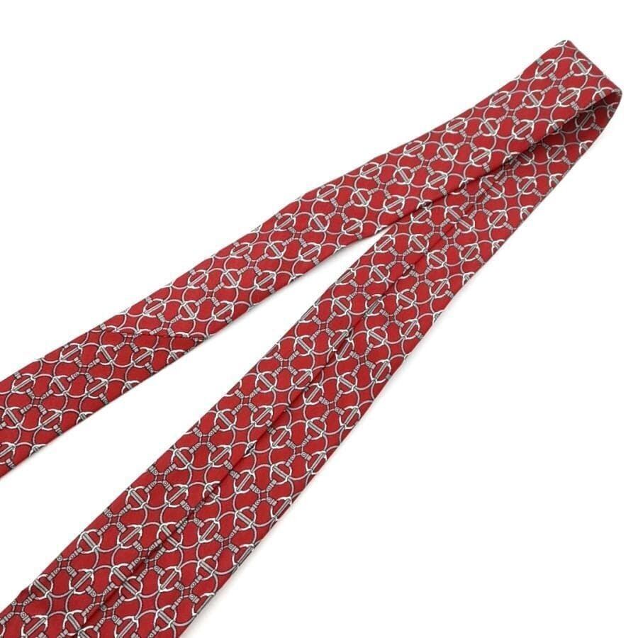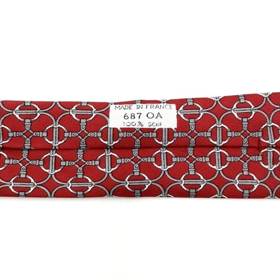 ・送料無料 超美品 エルメス HERMES ネクタイ 総柄 スーツ小物 687OA 仏製 フランス製 赤 レッド系 メンズ